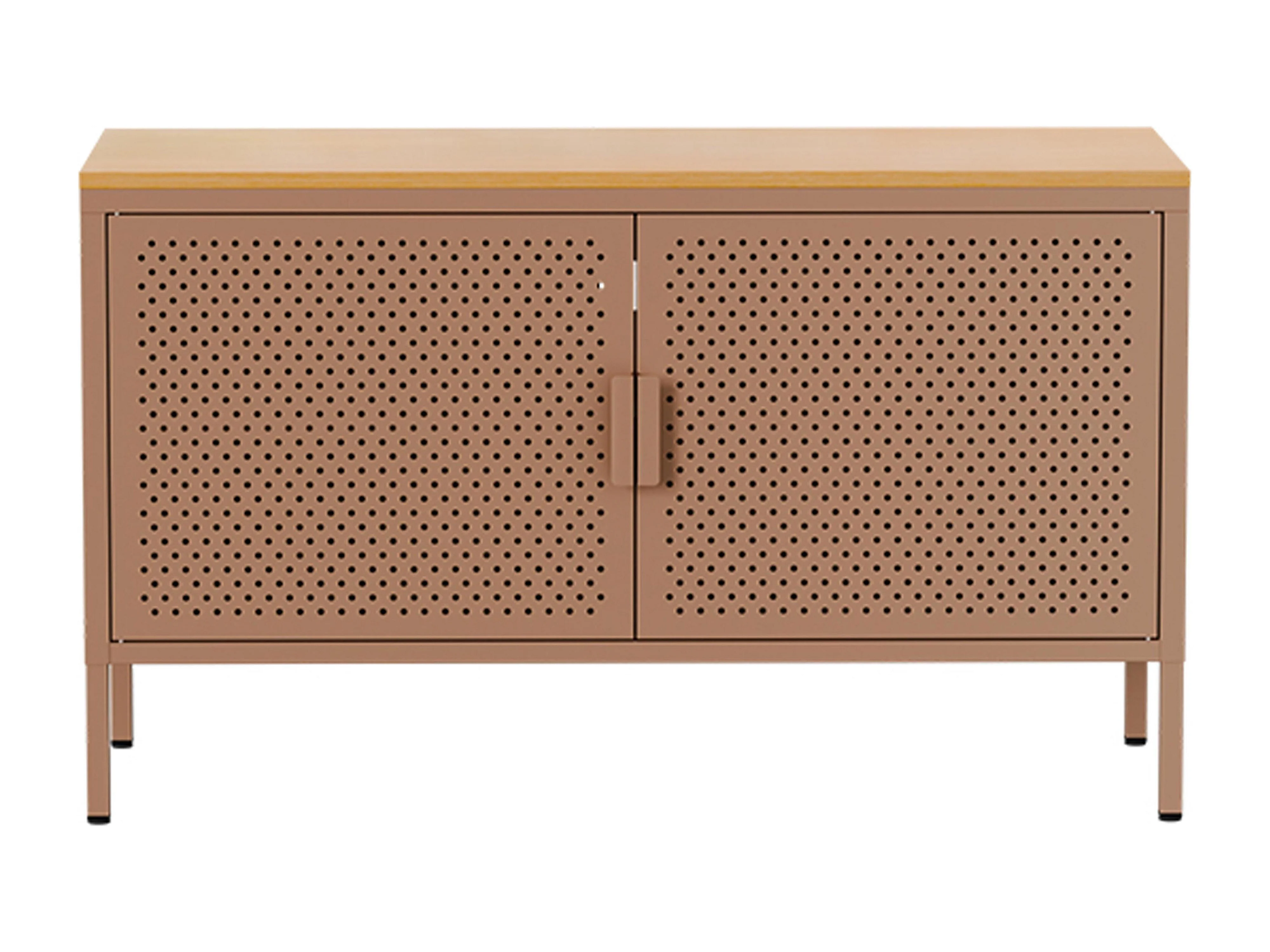 Buffet moderne 2 portes 110 cm en métal et verre marron