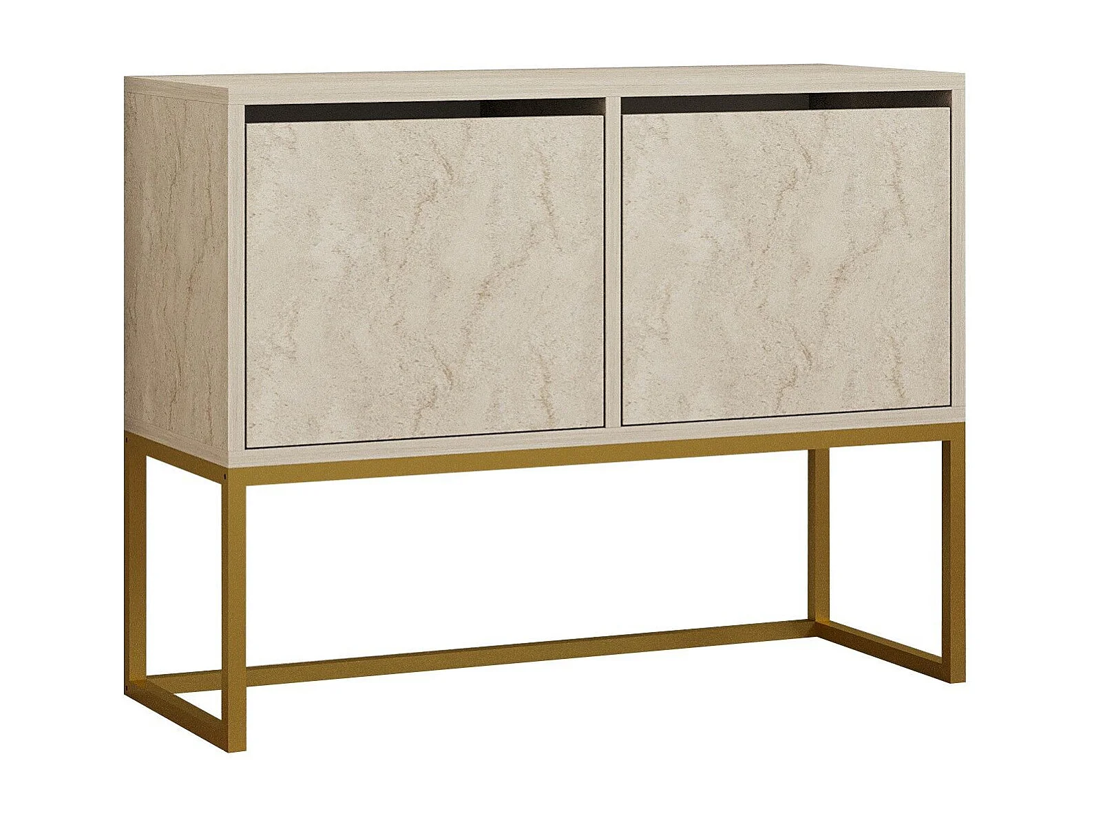 Buffet moderne 2 portes Zinette L90cm Effet travertin Beige et Or