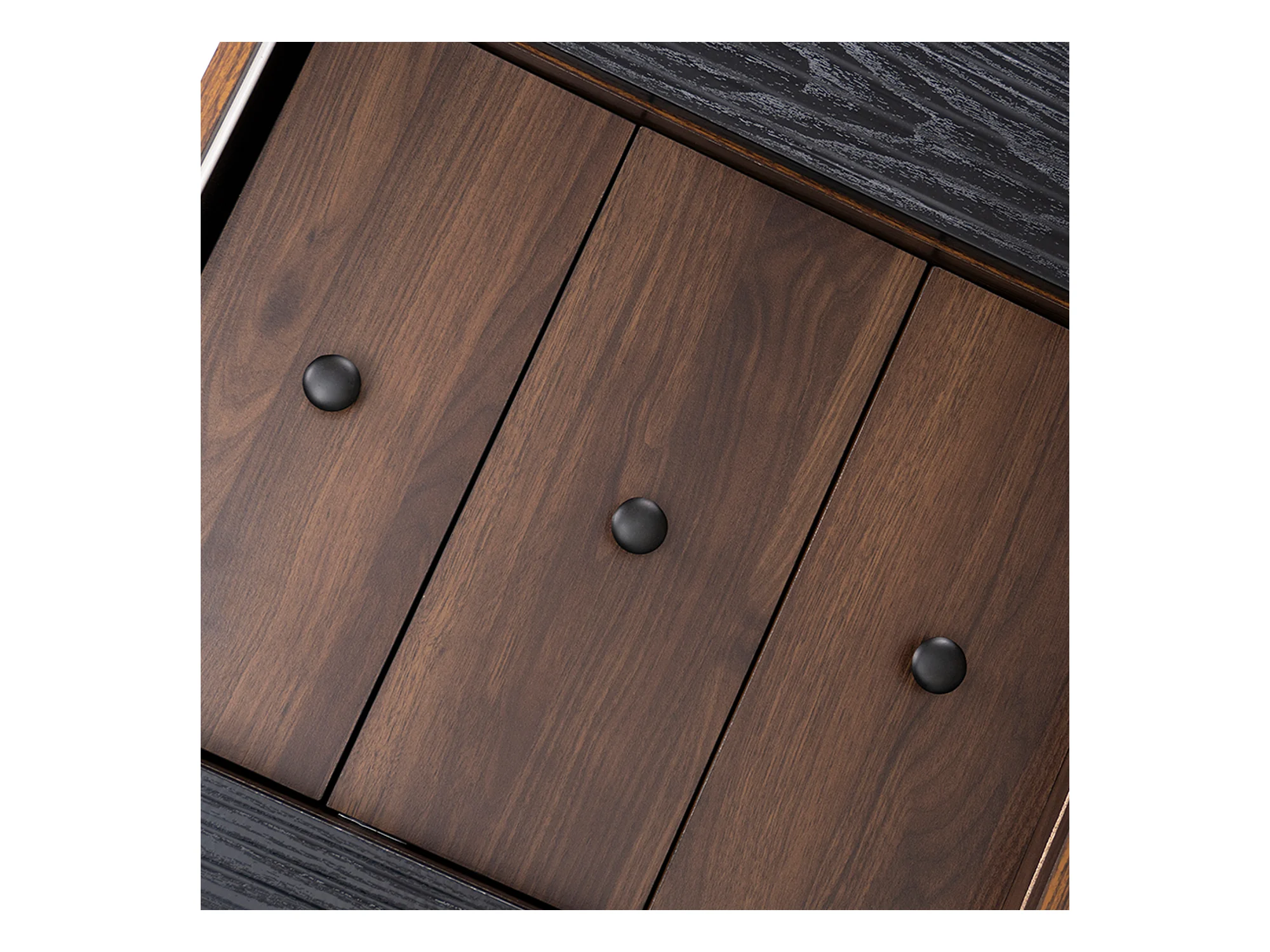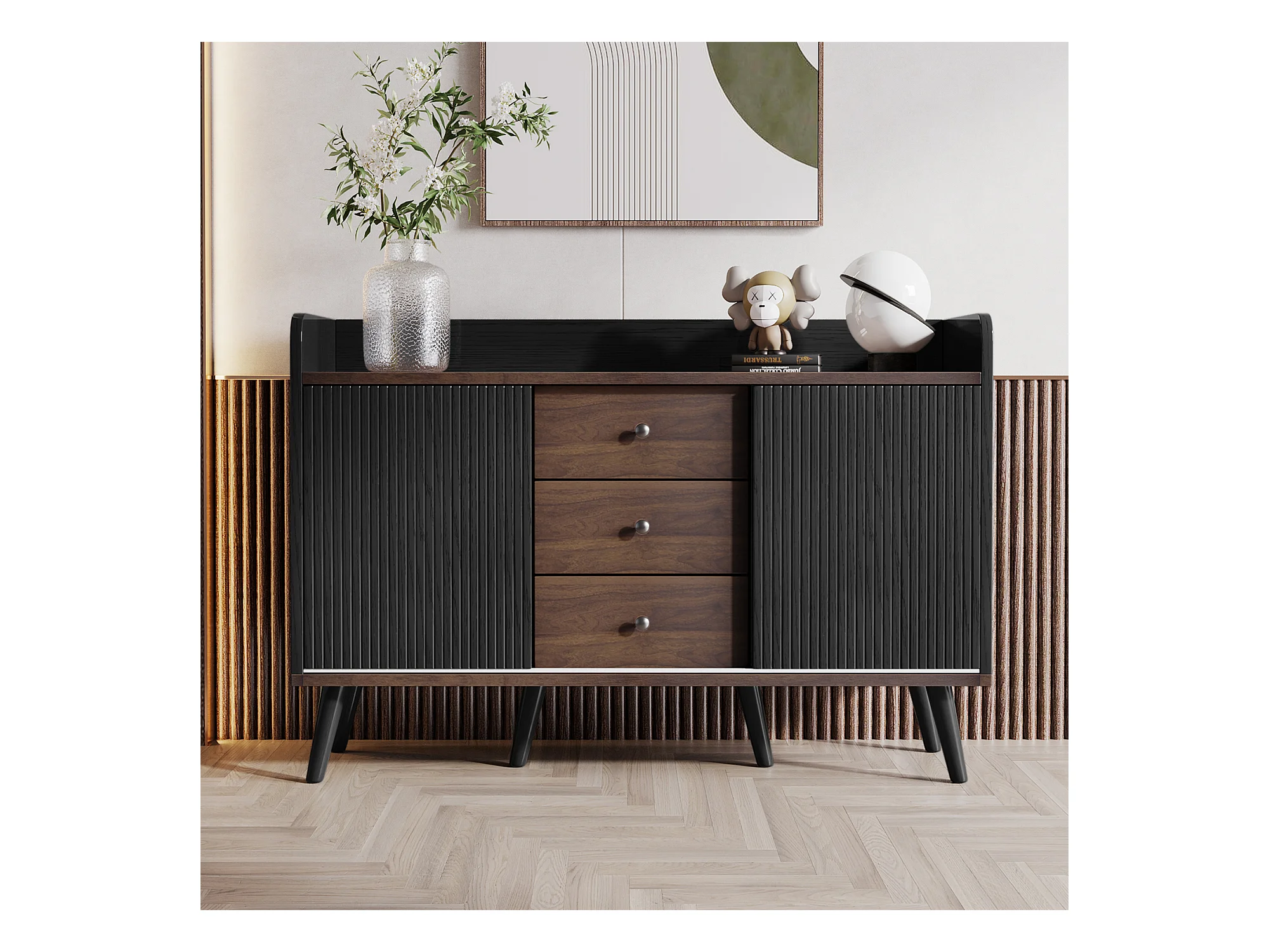 Buffet moderne, 3 tiroirs, design bois, avec étagères de rangement, panneau de particules, noir et bois (117.5x40x80 cm)