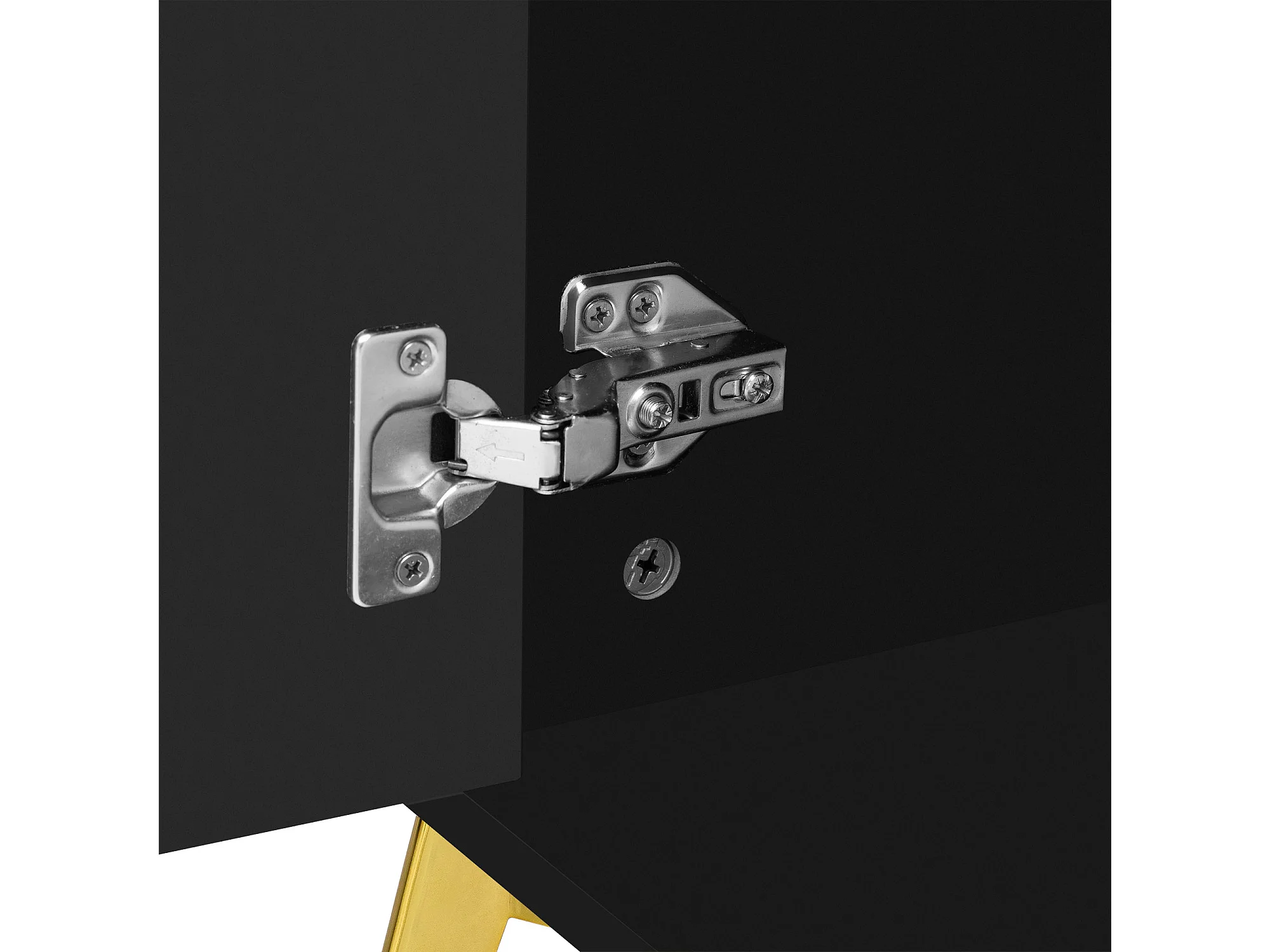 Buffet avec 2 portes et 3 tiroirs, pieds métalliques, design linéaire, MDF, noir et or (140x75x35 cm)