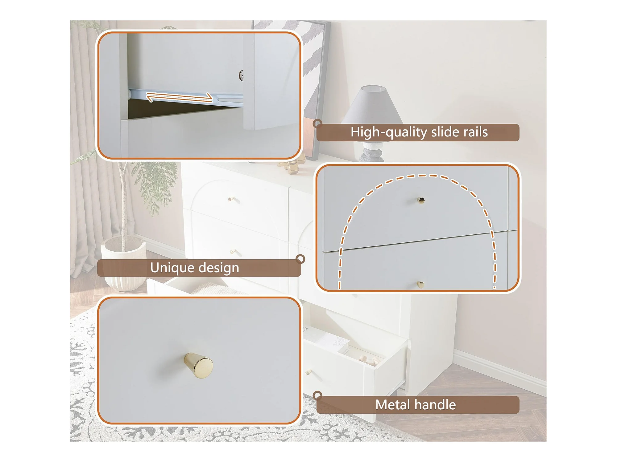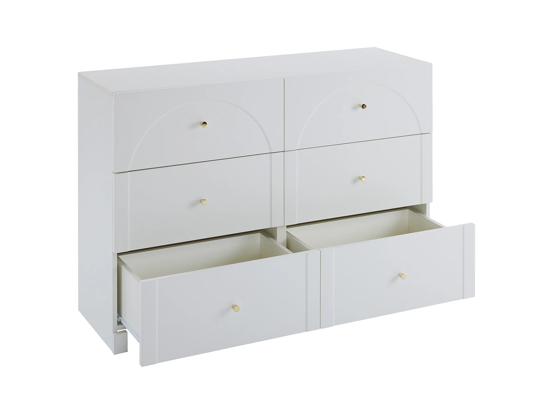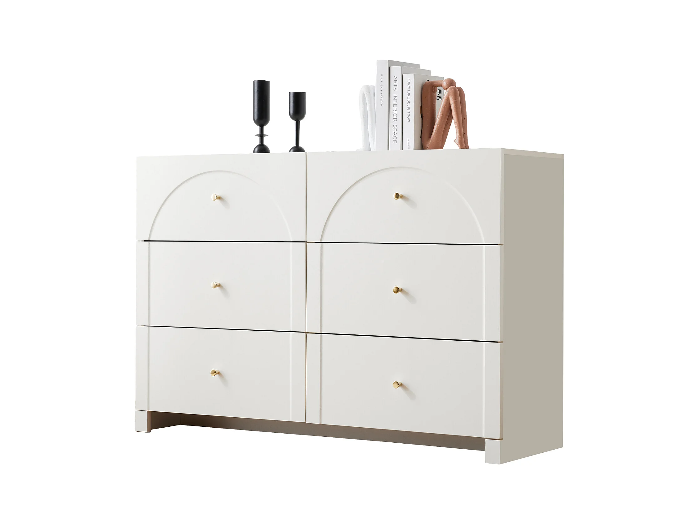 Buffet moderne 120x40x78 cm - 6 tiroirs - Pieds en métal - MDF - Blanc