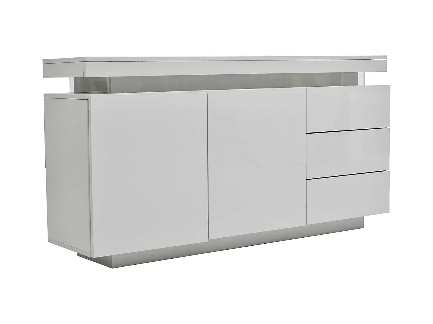 Buffet moderne avec LED- 2 portes et 3 tiroirs - Blanc