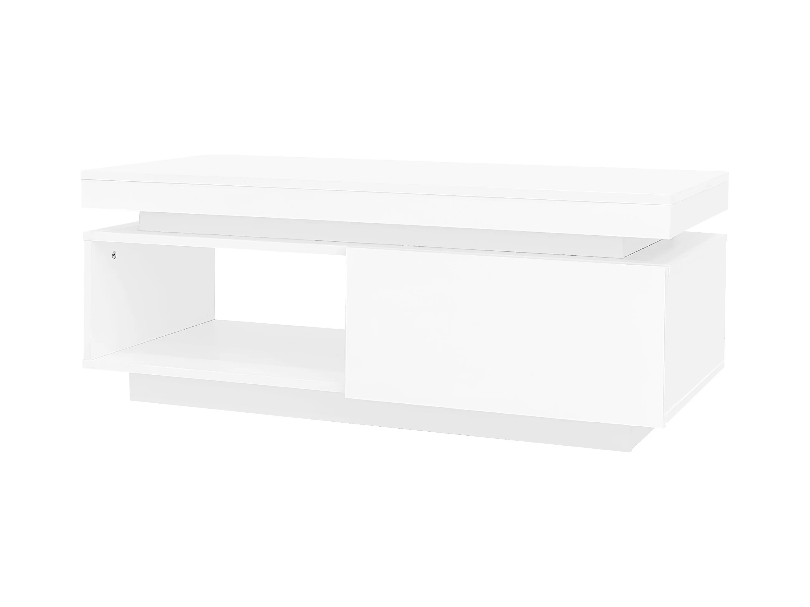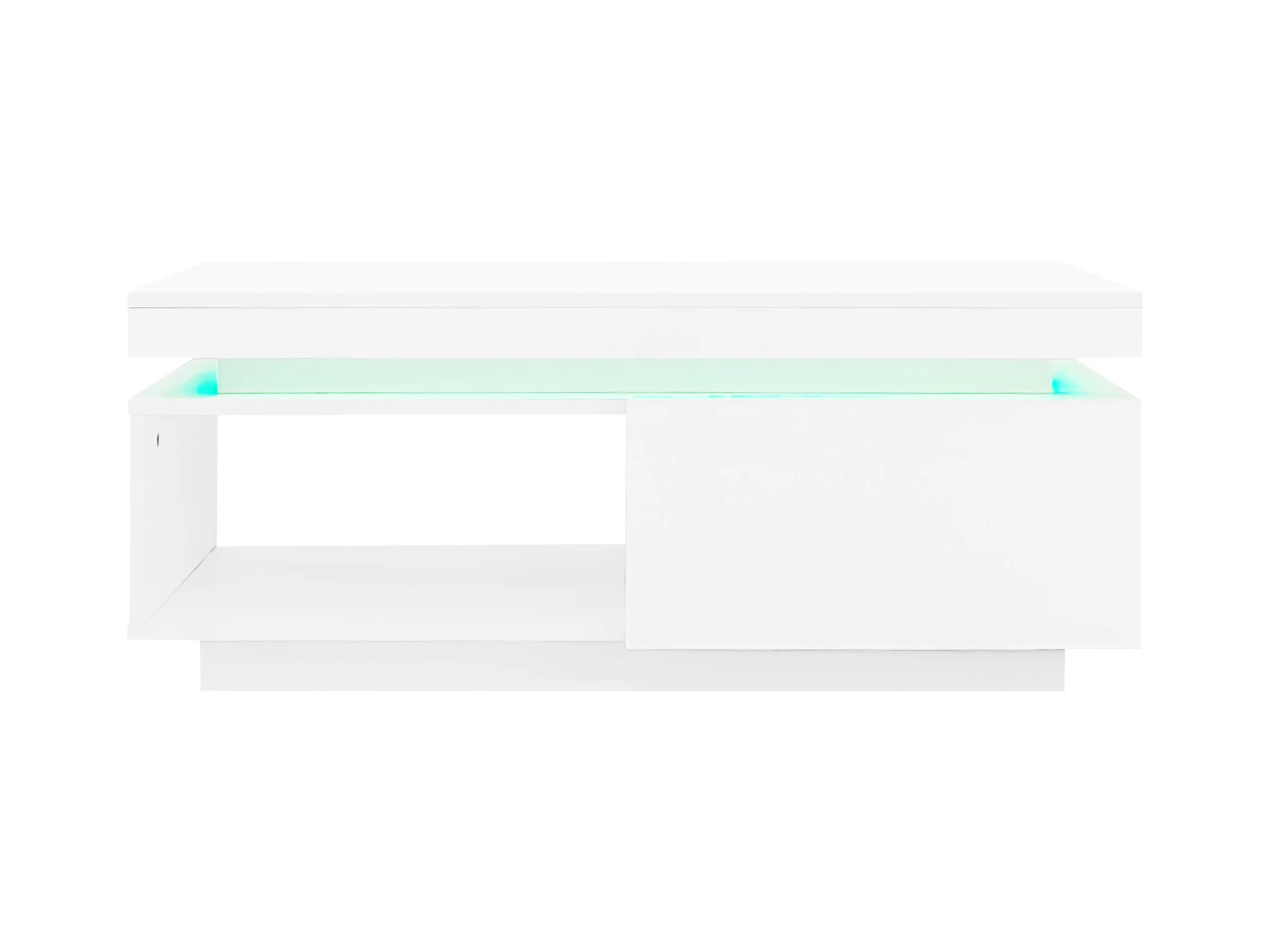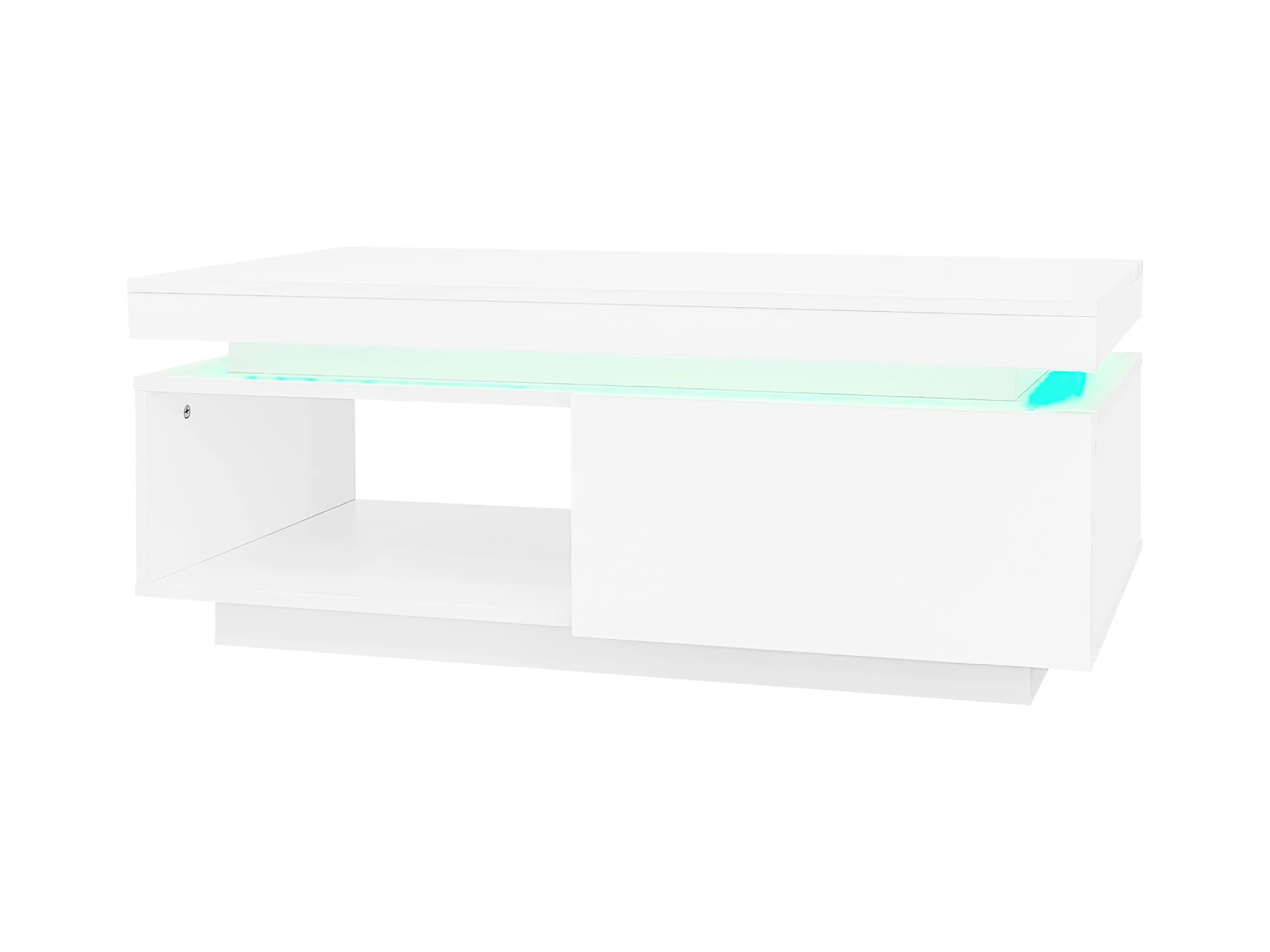 Buffet moderne avec 6 tiroirs, LED et plateau en verre trempé, design laqué blanc (140x35x70 cm)