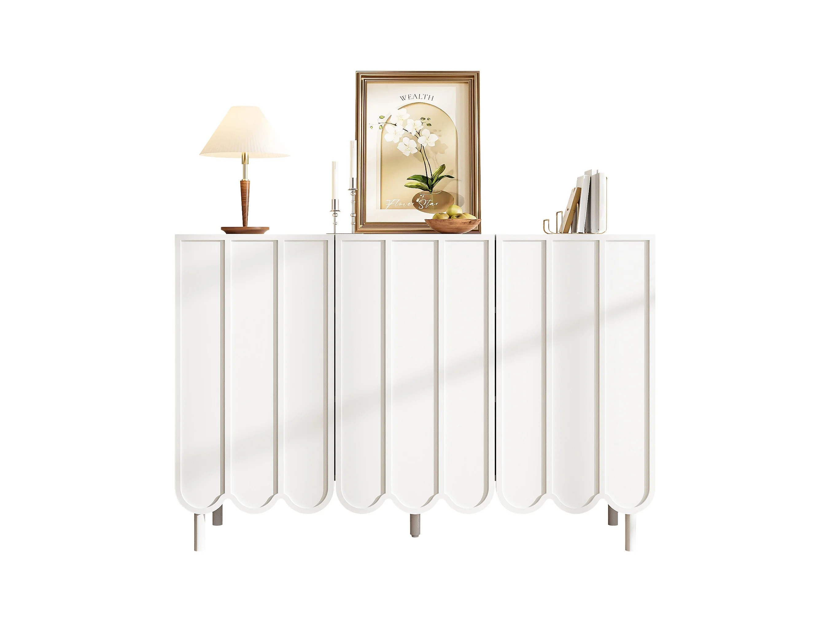 Buffet moderne avec 4 portes incurvées - pour salon et salle à manger - 160 x 38 x 80 cm - MDF - Blanc