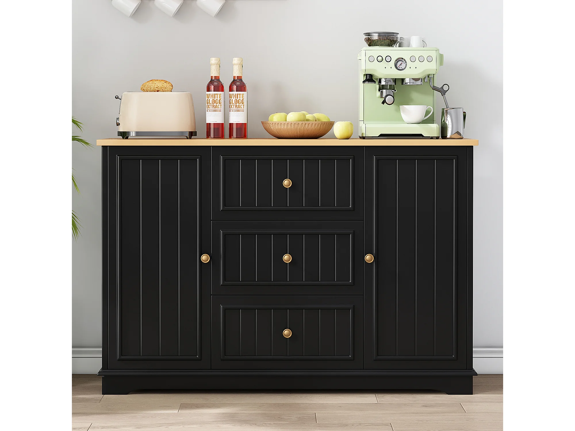 Buffet moderne et élégant - 126 x 40 x 86 cm - avec 3 tiroirs + 2 portes - MDF - noir