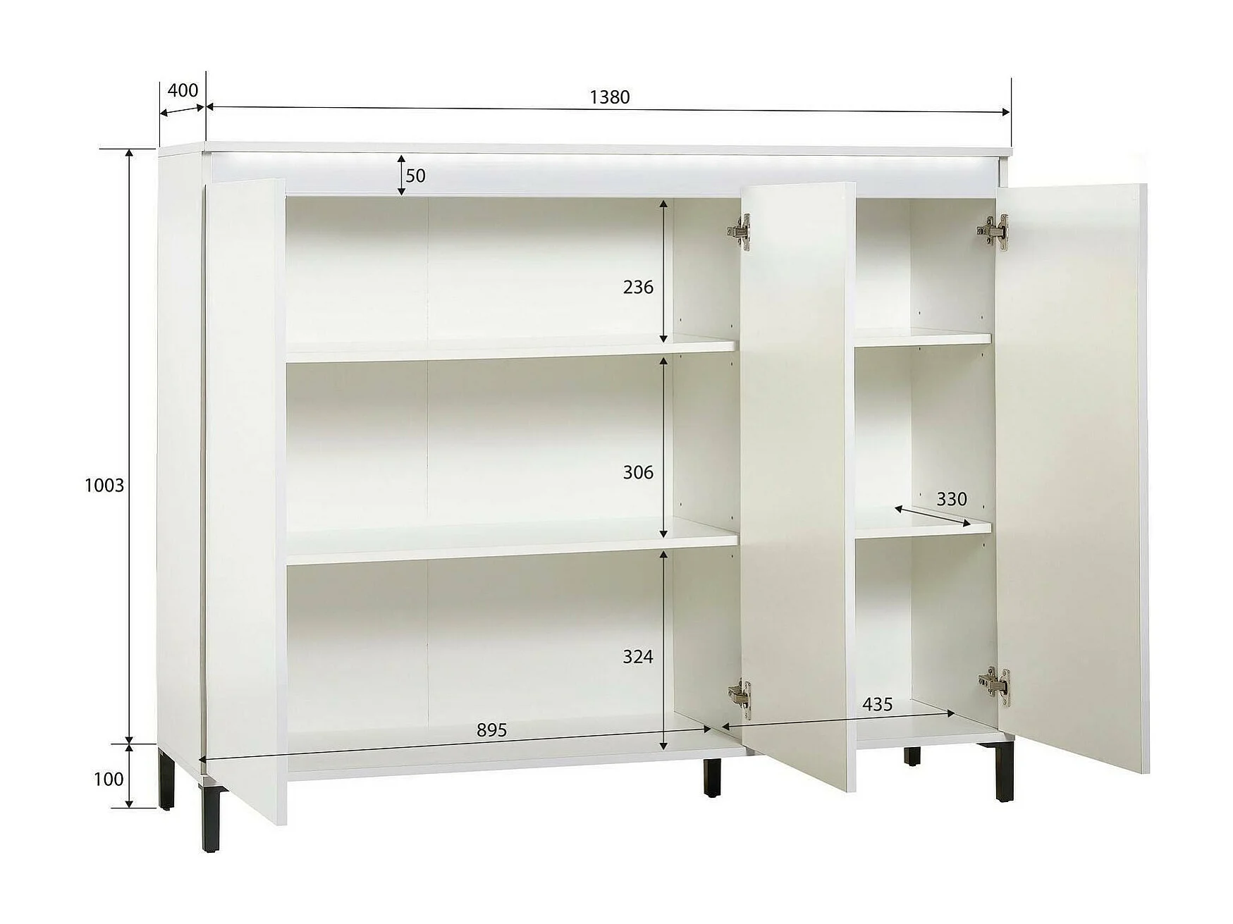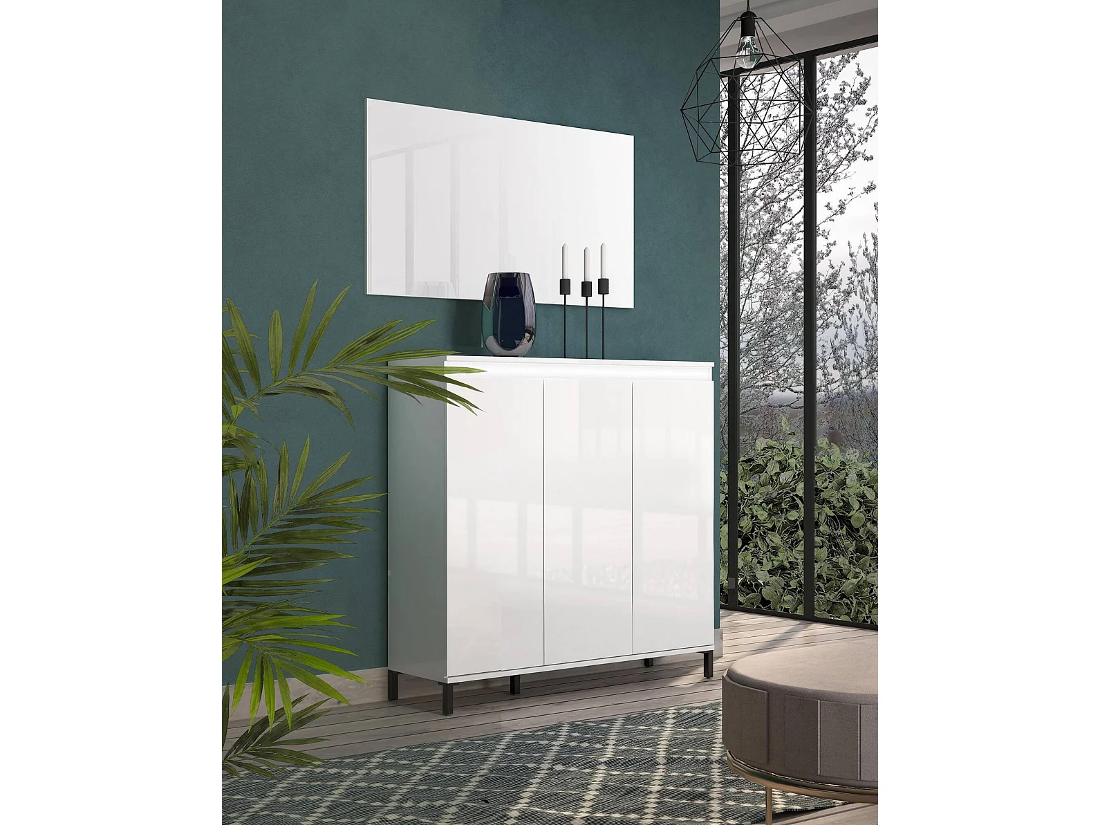 Buffet Mogadiscio, Buffet du salon, Commode de salon, Garde-manger de cuisine, Made in Italy, 138x40h110 cm, Blanc brillant et anthracite