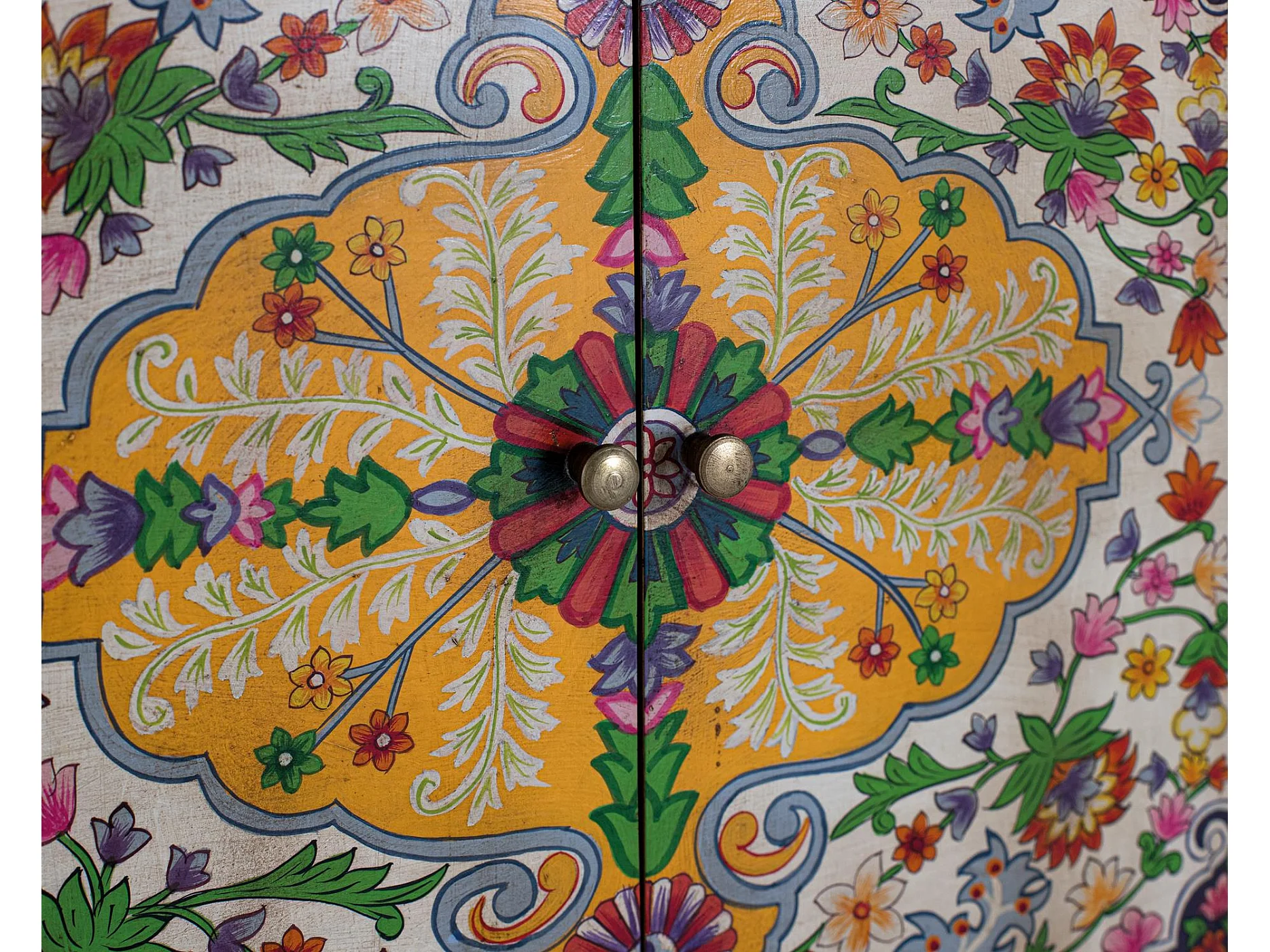 Buffet multicolore réalisé à la main en bois de manguier 80cm