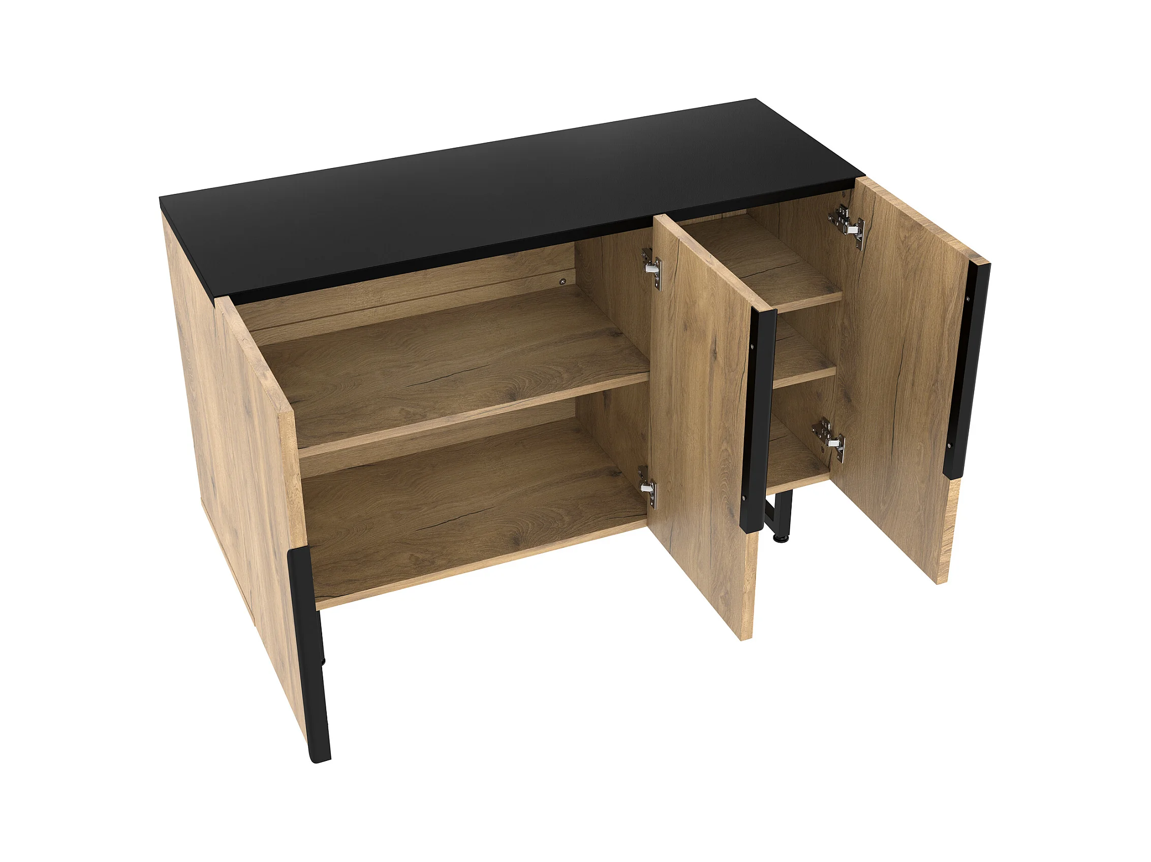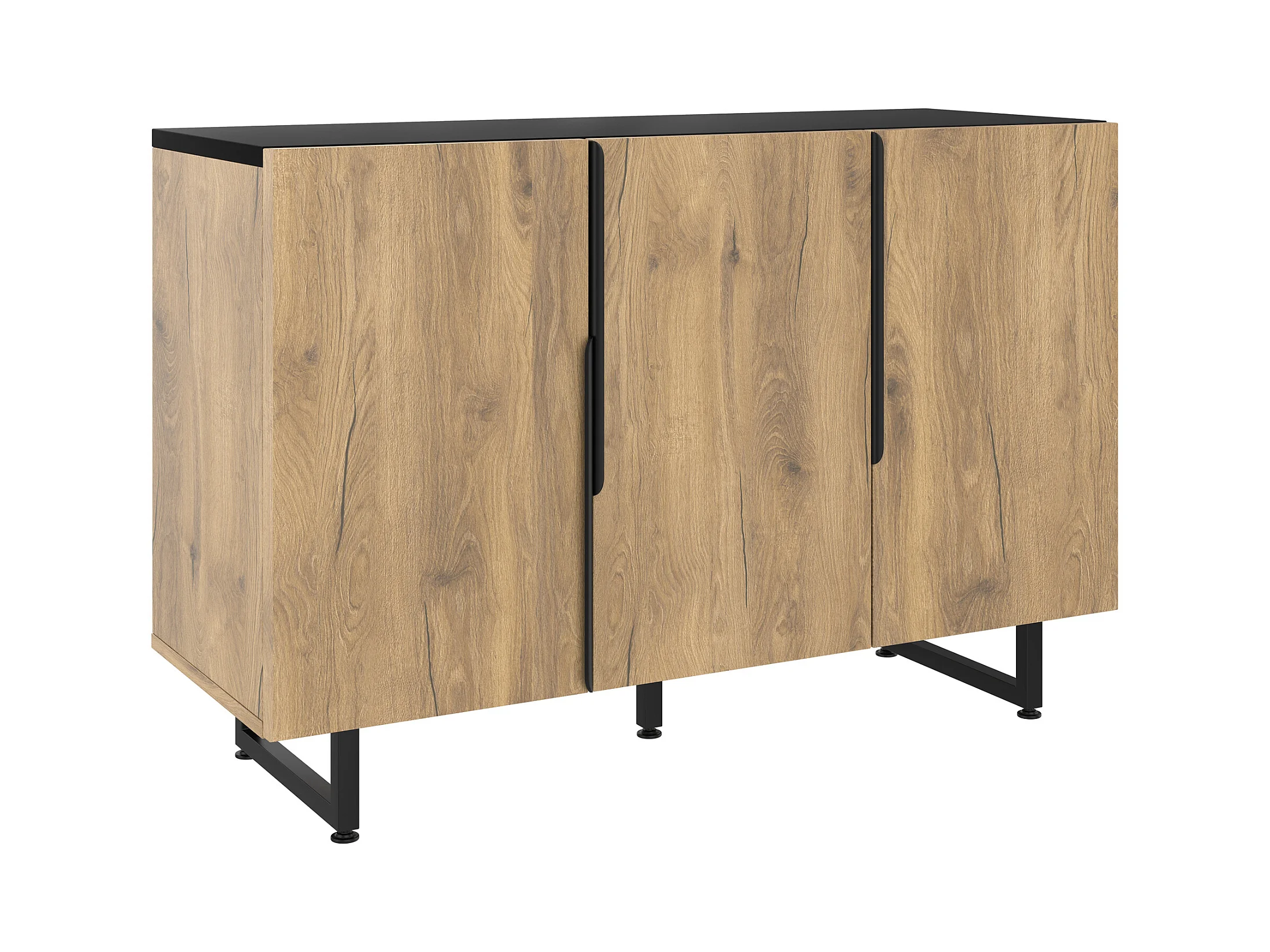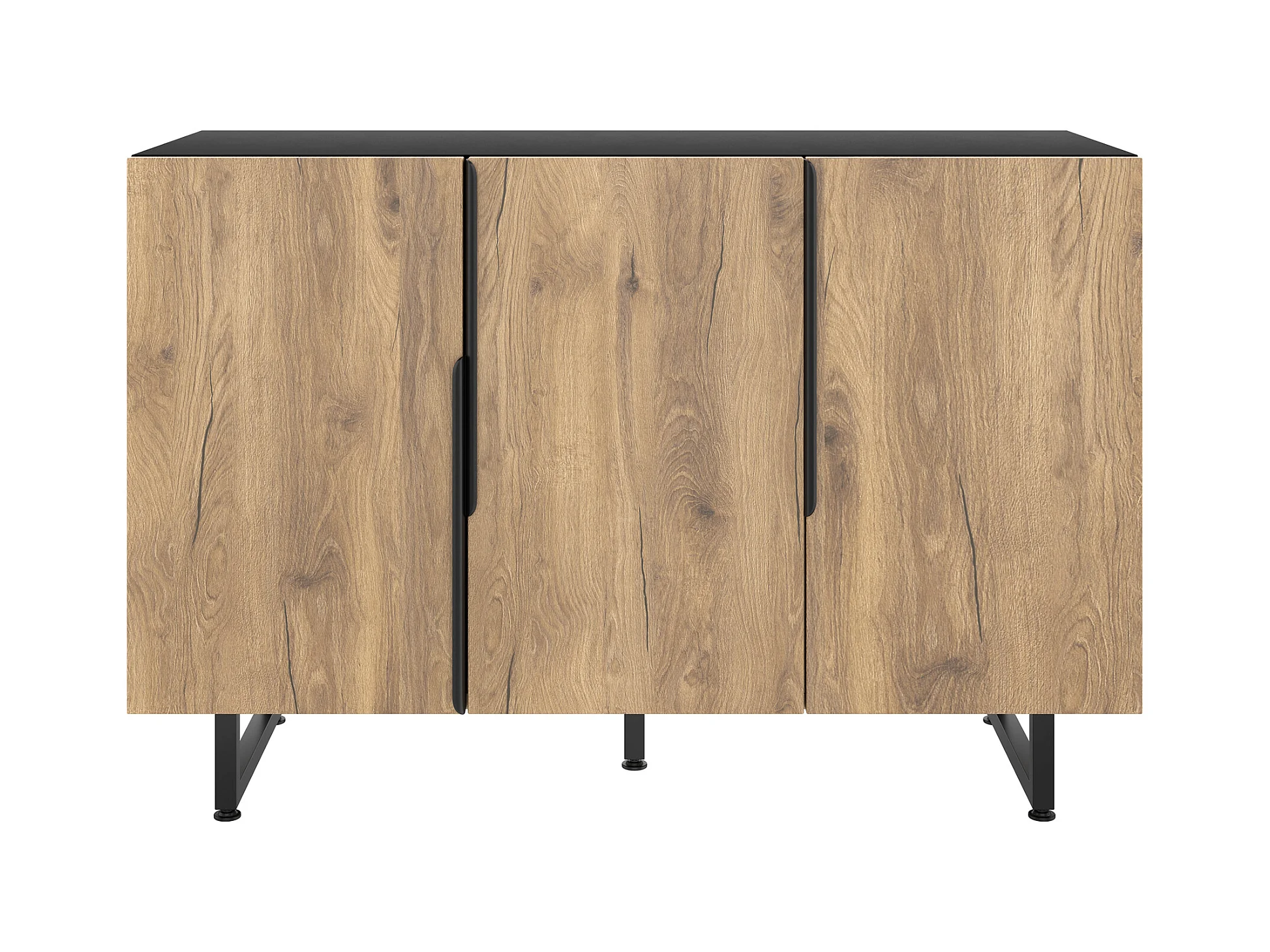 Buffet naturel avec 2 portes et 3 tiroirs, pieds en métal noir - pour salon et chambre