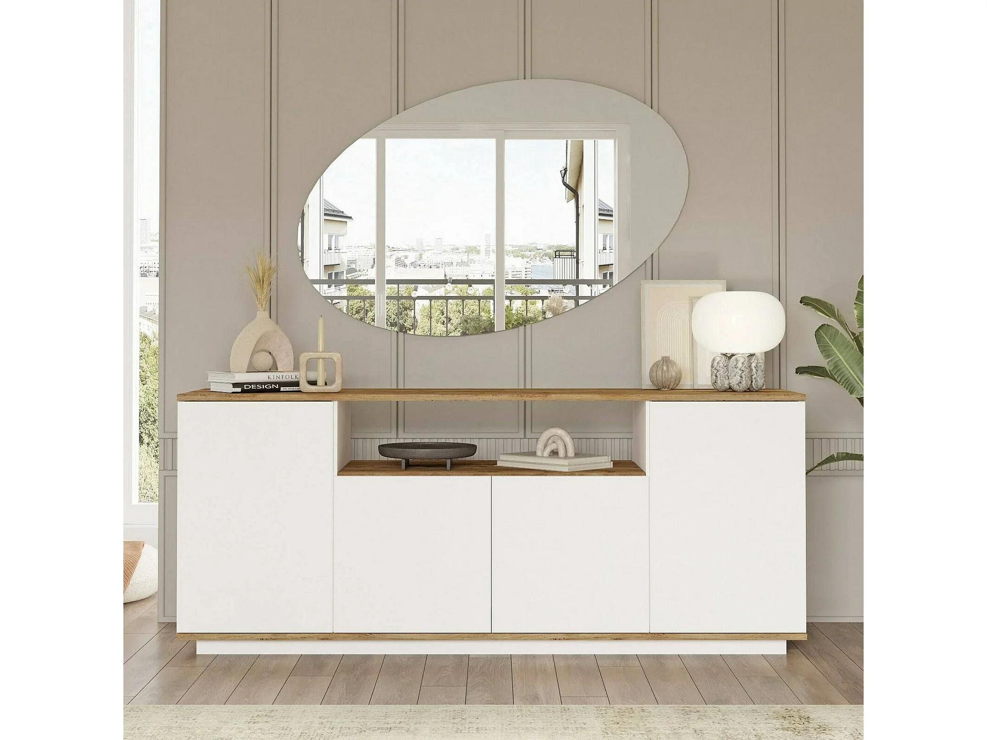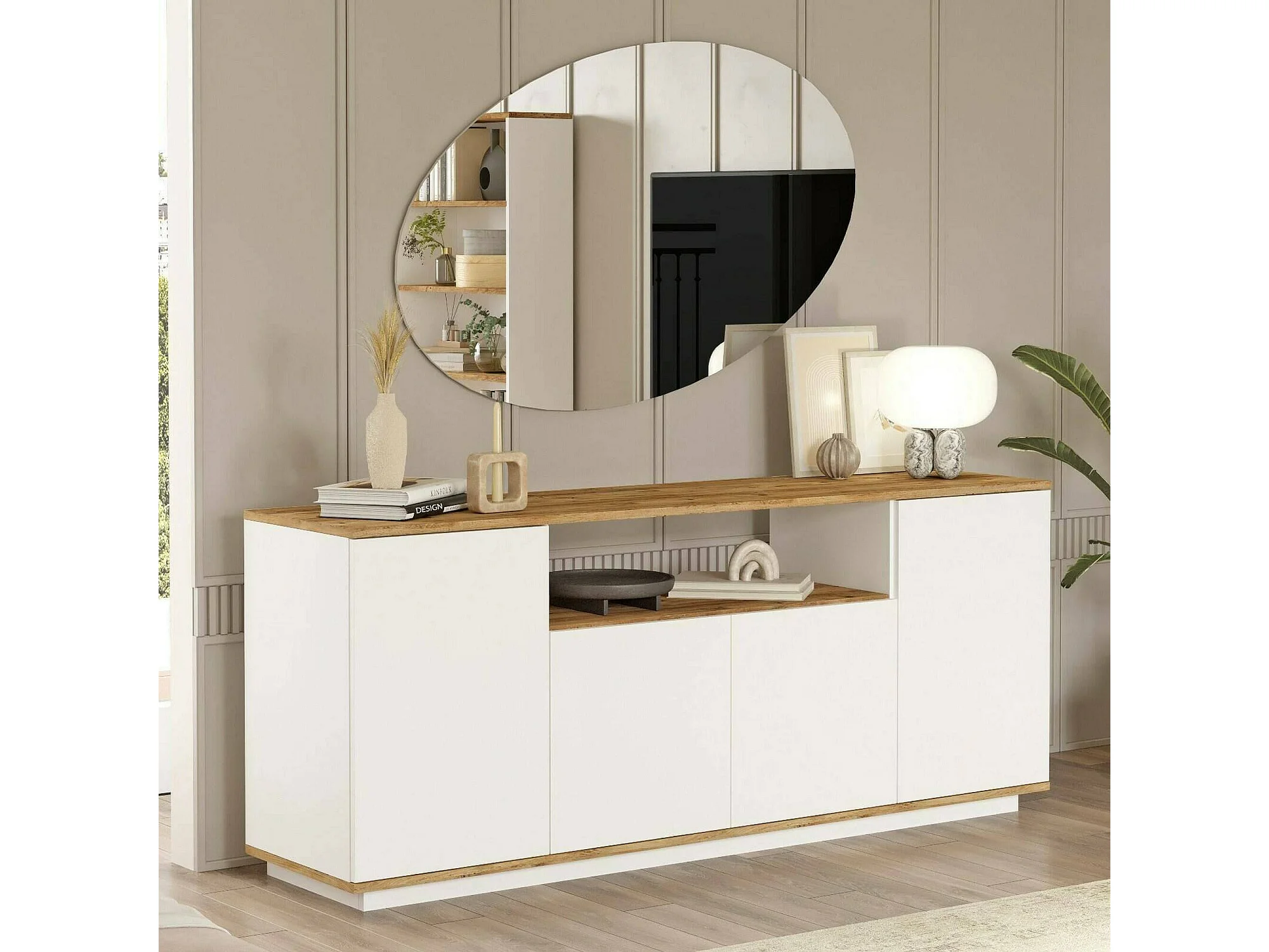 Buffet Nekkar, Buffet du salon, Commode de salon, Garde-manger de cuisine, 180x45h75 cm, Chêne et Blanc