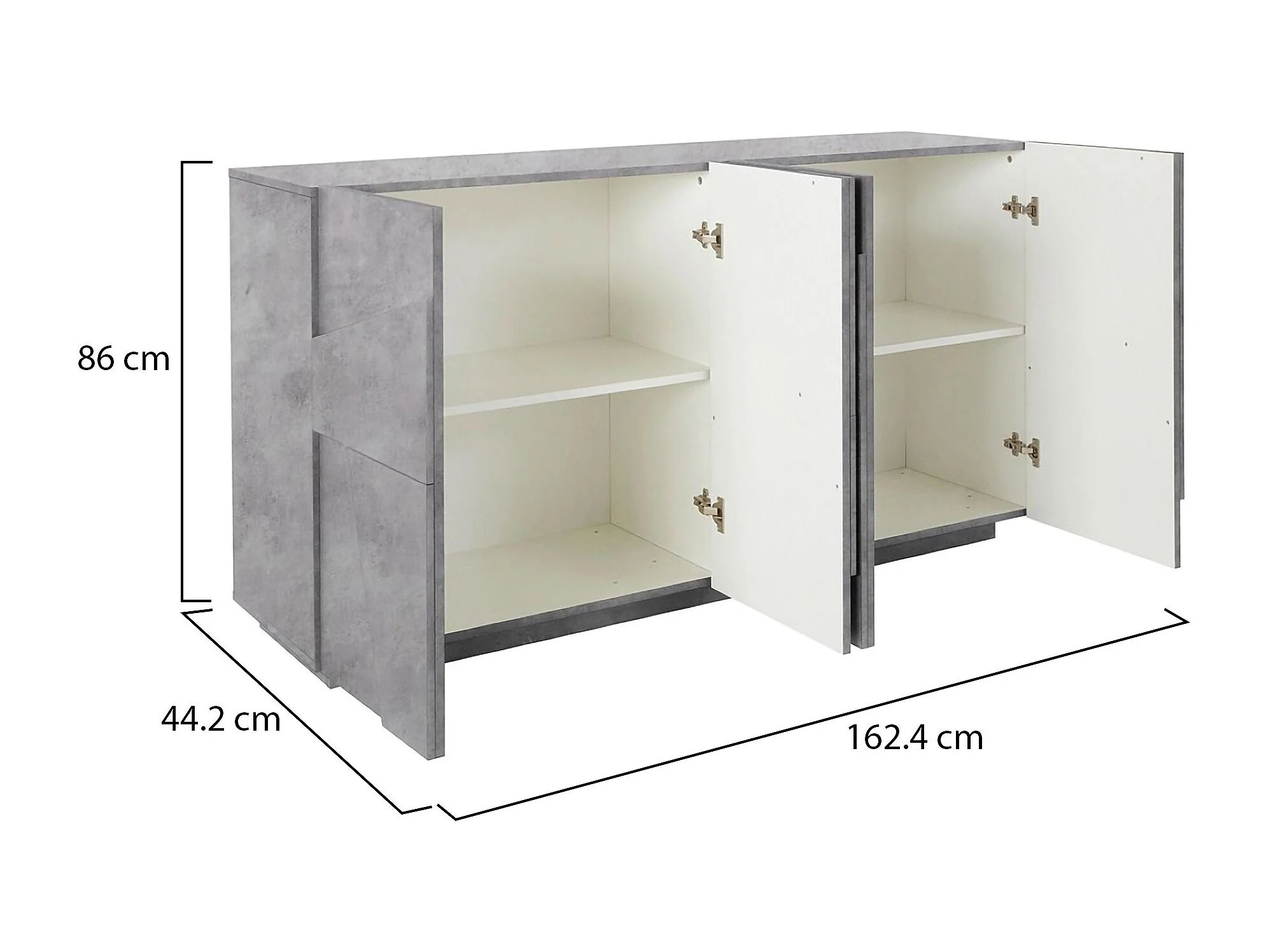 Buffet Noel, Buffet de cuisine 4 portes, Buffet de salon, 100% Made in Italy, 162x44h86 cm, Ciment