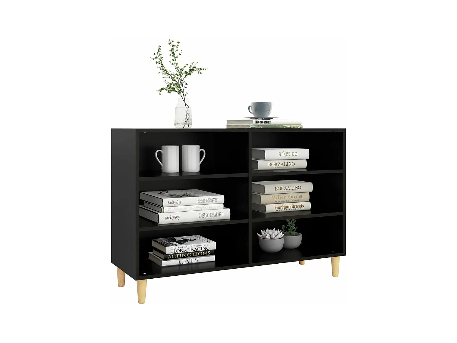 Buffet avec pieds en bois massif Noir 60x35x70 cm Aggloméré