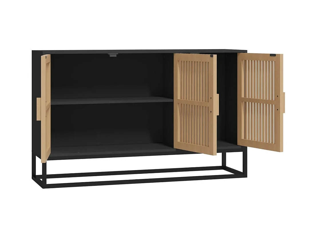 Buffet Noir 105x30x60 cm Bois de pin massif et rotin naturel