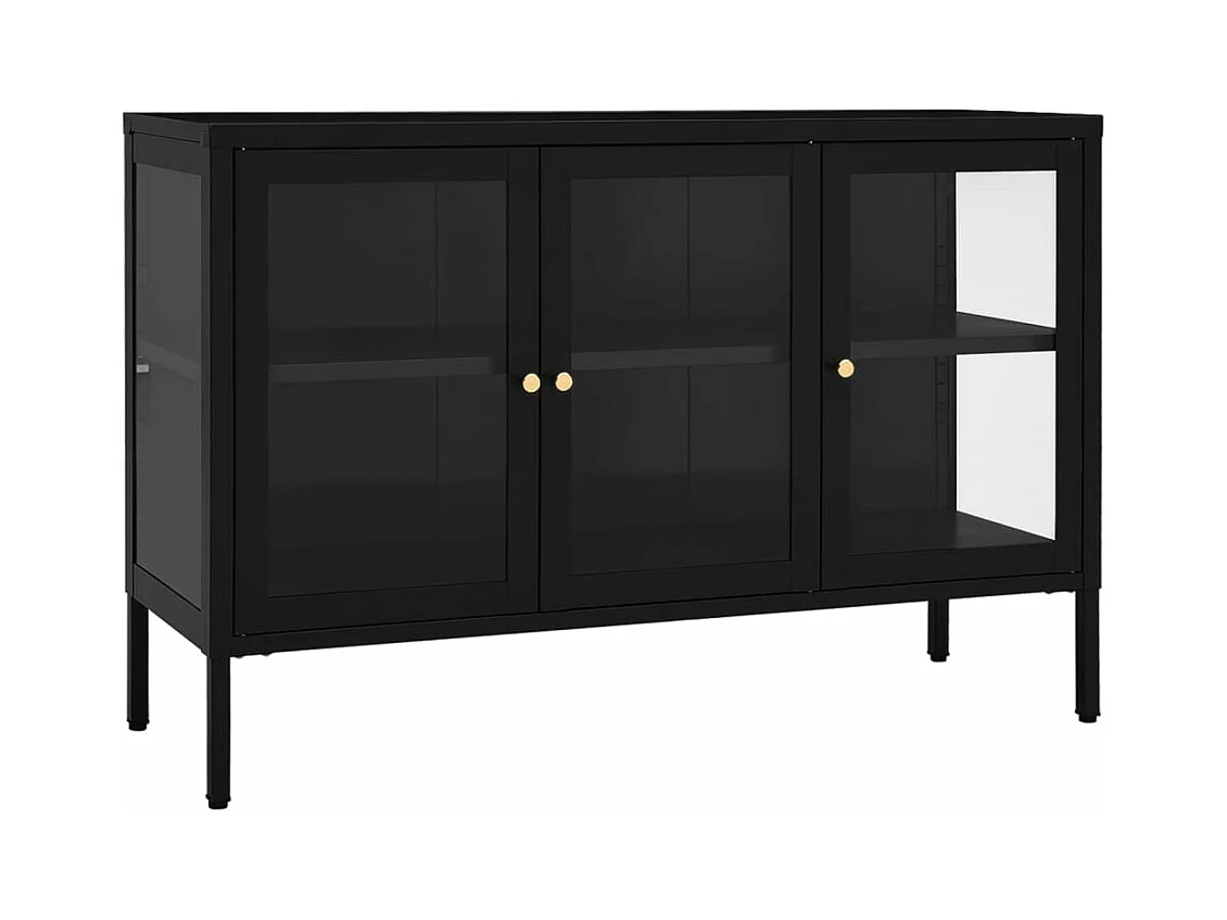 Buffet Noir 75x35x70 cm Acier et verre trempé