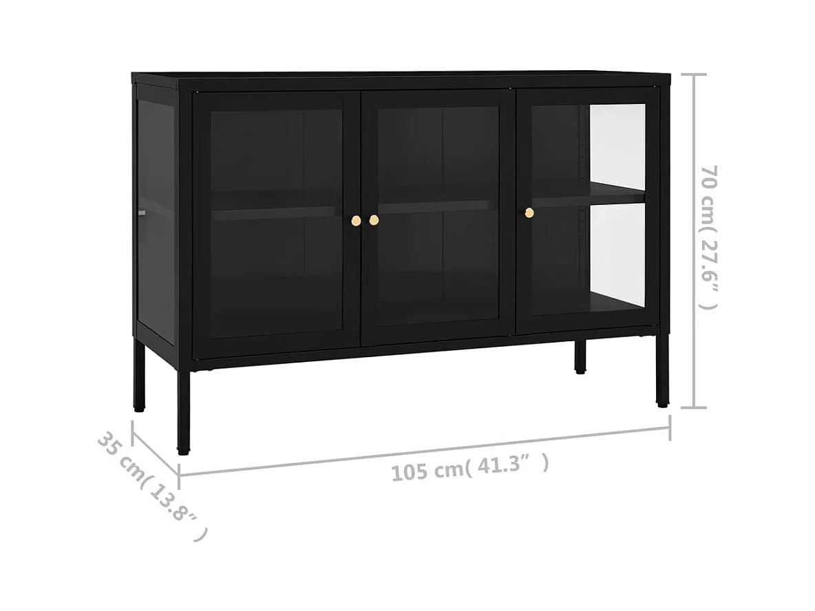 Buffet Noir 105x35x70 cm Acier et verre trempé