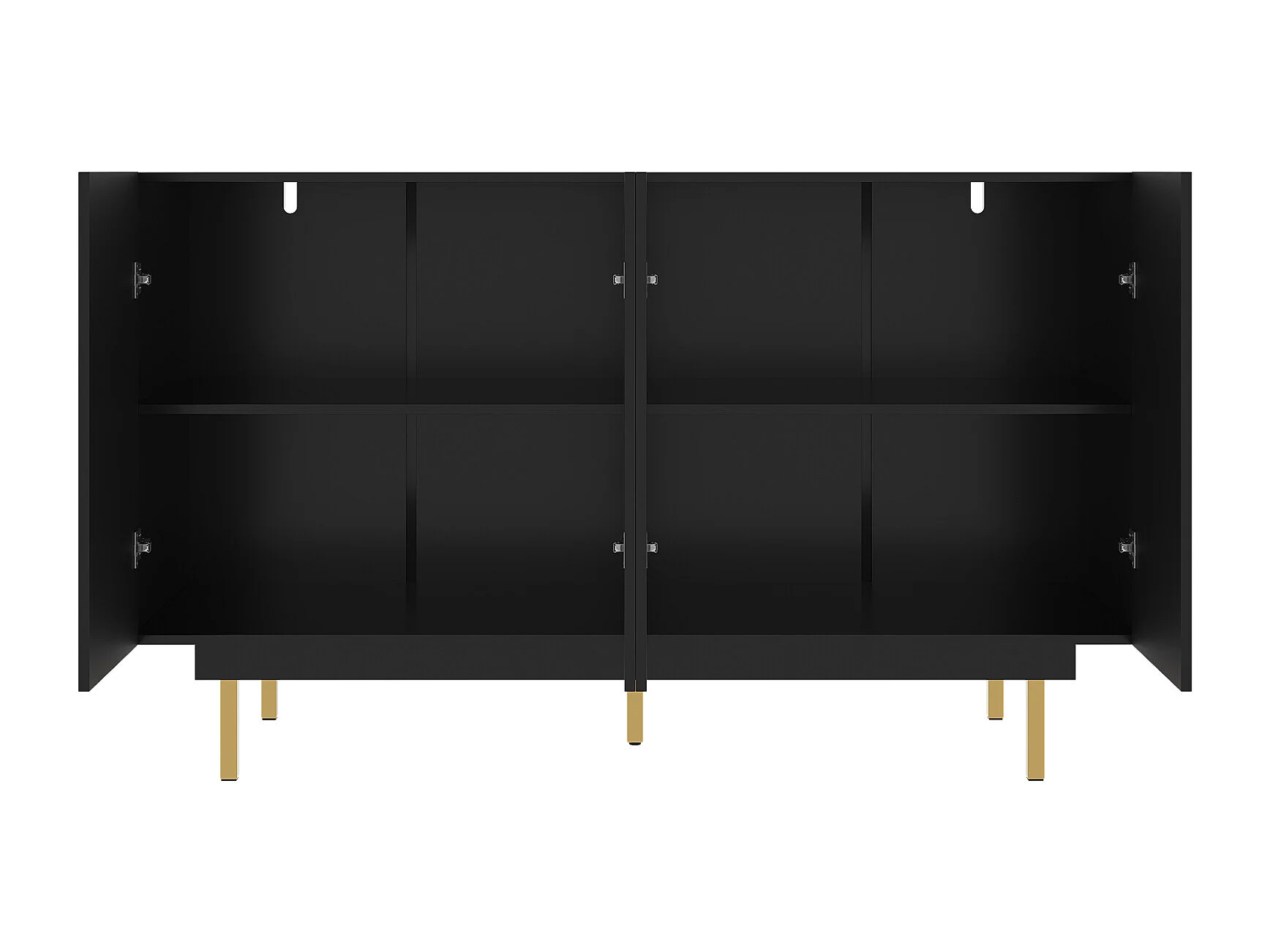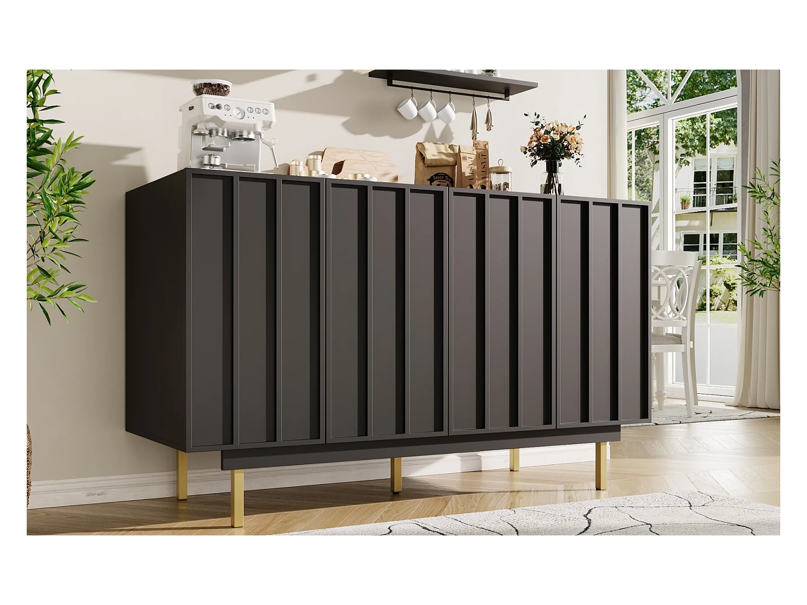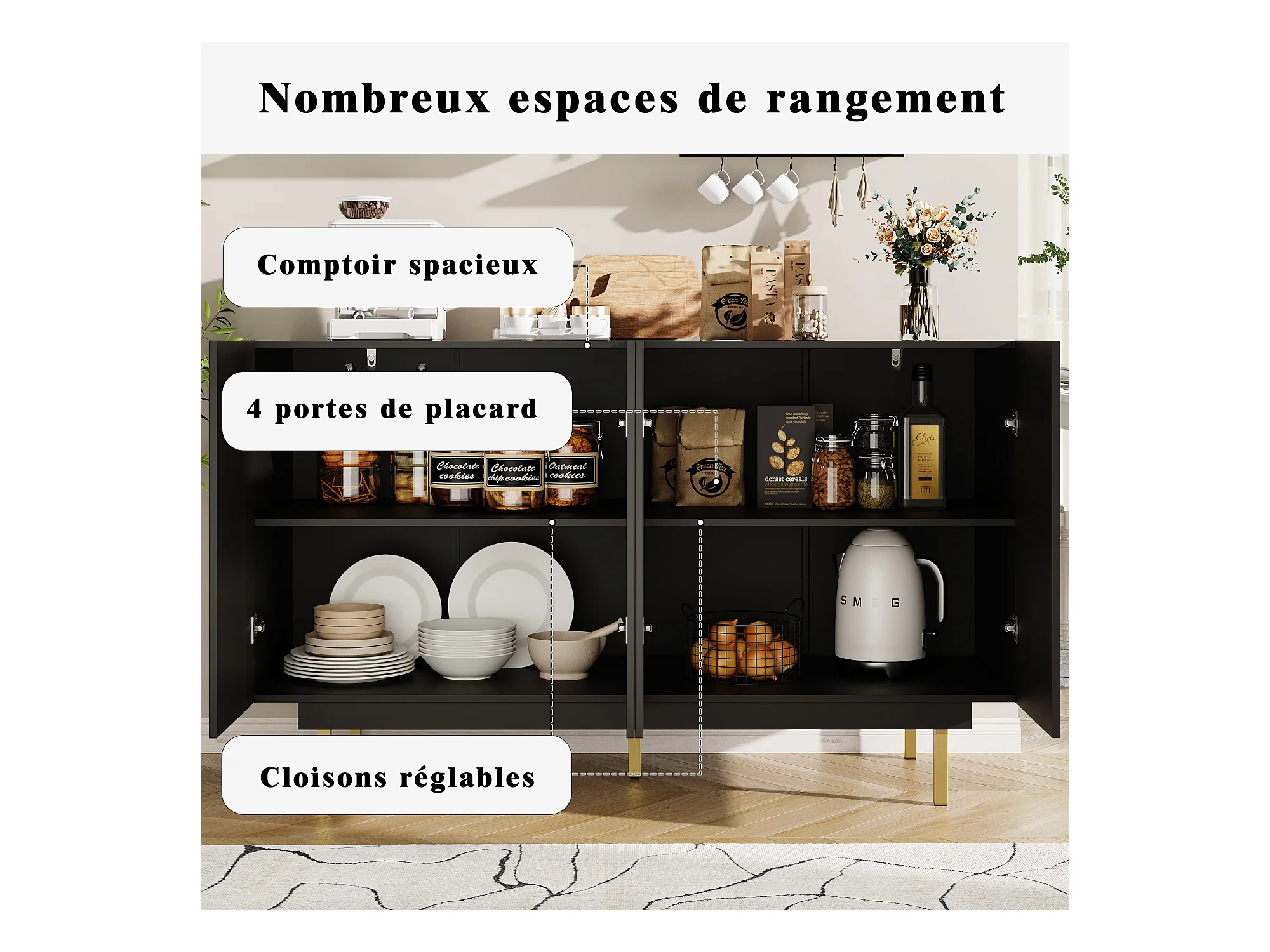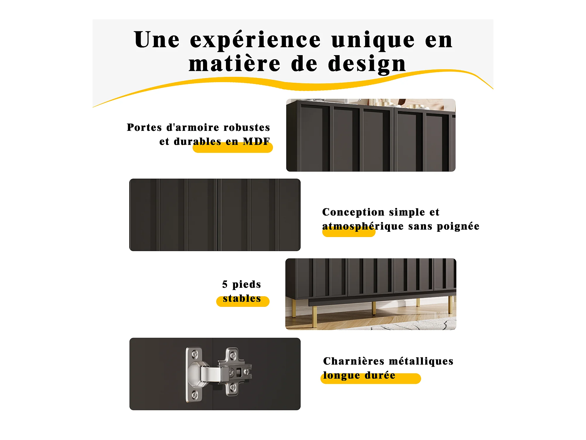Buffet moderne et élégant 4 portes – Poignées en métal doré – Meuble noir pour salle à manger, salon, chambre ou entrée