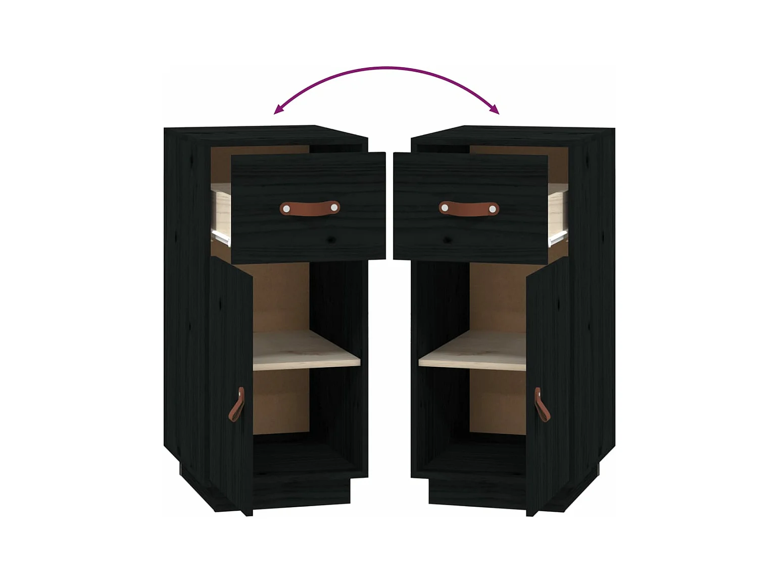 Buffets 2 pcs Noir 40x35x80 cm Bois massif de pin EGER15413