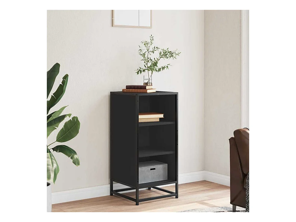 Buffet noir 35,5x35x76 cm bois d'ingénierie et métal