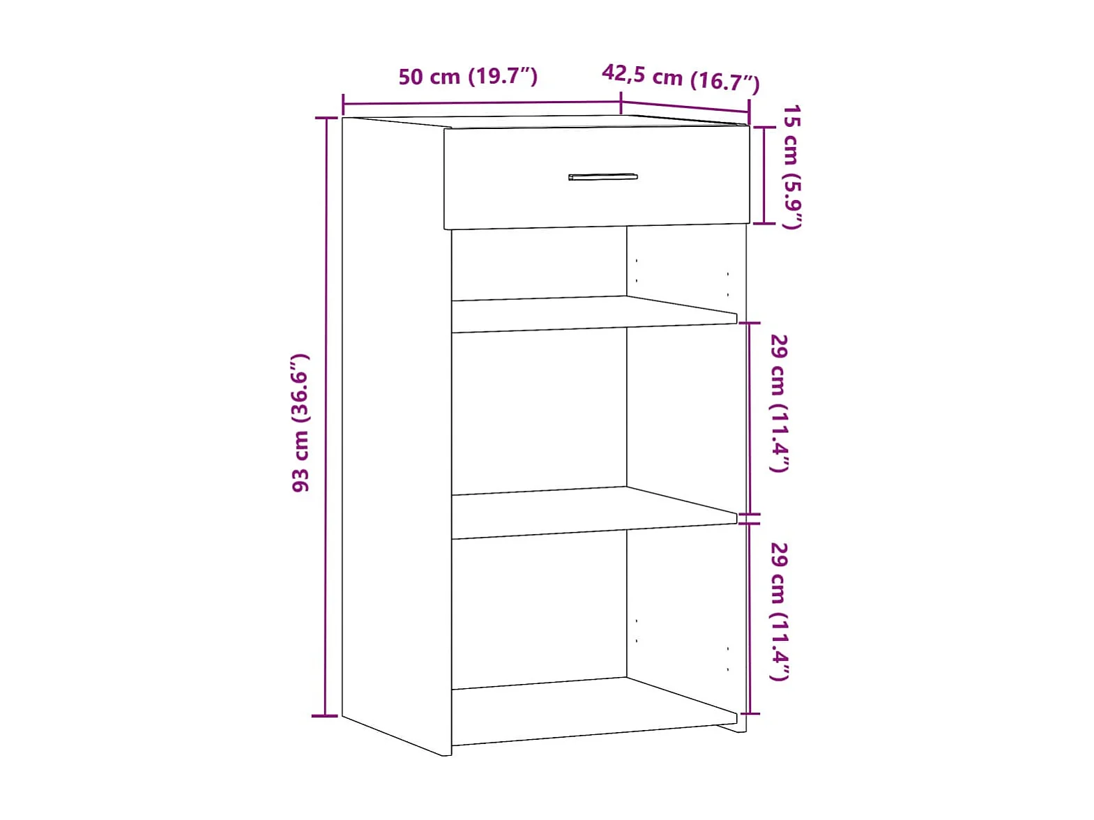 Buffet noir 50x42,5x93 cm bois d'ingénierie