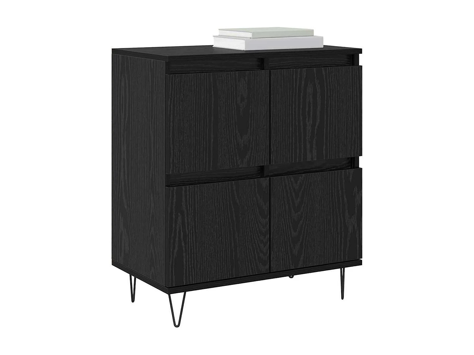 Buffet avec pieds en bois massif noir bois d'ingénierie