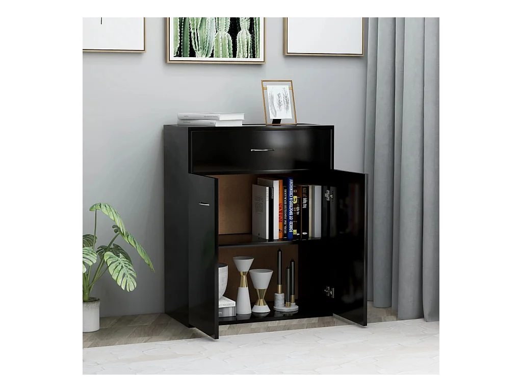 Buffet Noir brillant 60x30x72 cm Aggloméré