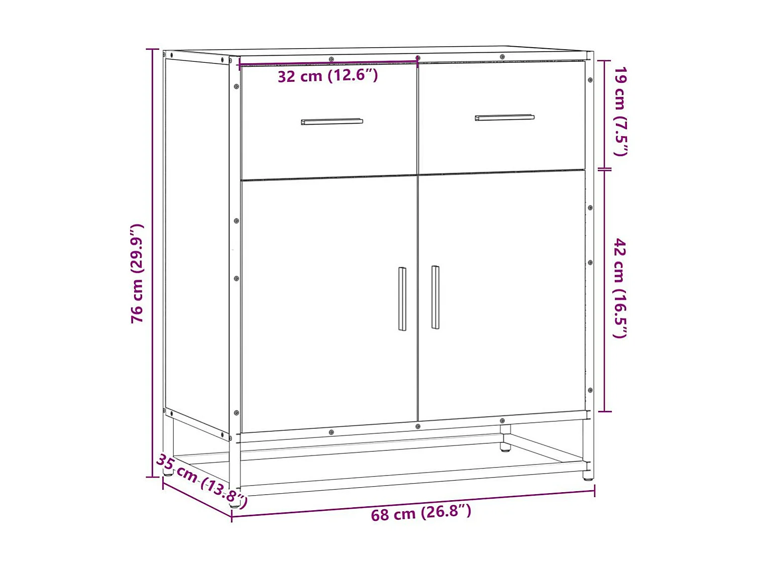Buffet noir 68x35x76 cm bois d'ingénierie
