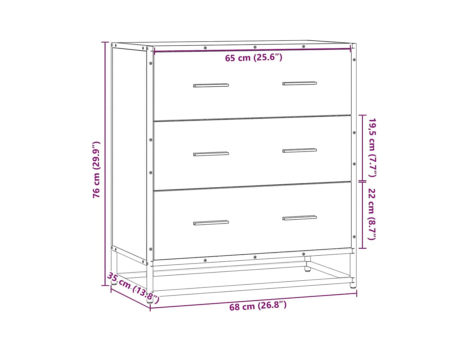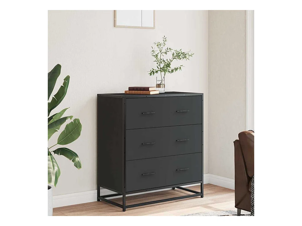 Buffet noir 68x35x76 cm bois d'ingénierie et métal