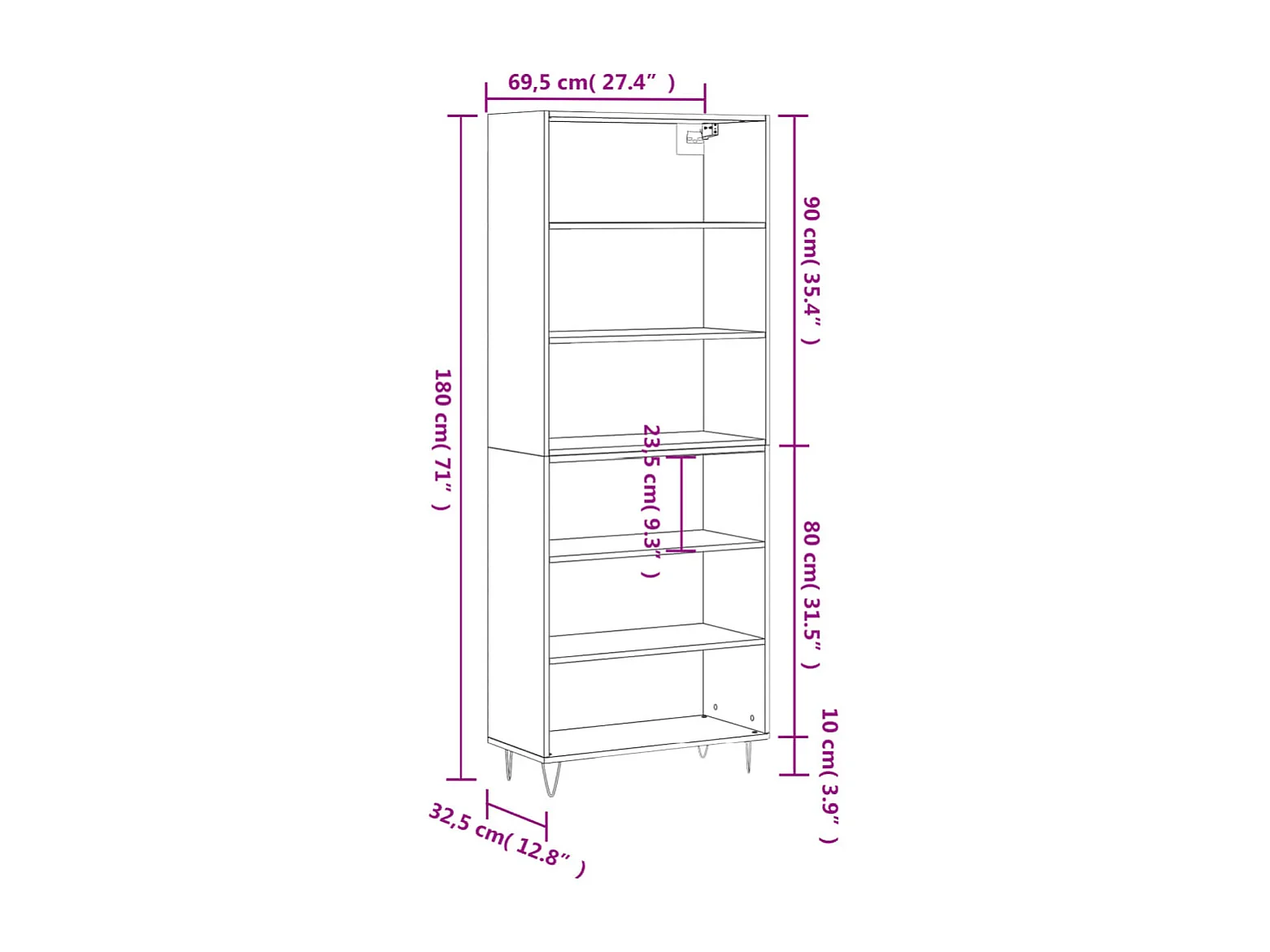 Buffet haut Noir 69,5x34x180 cm Bois d'ingénierie