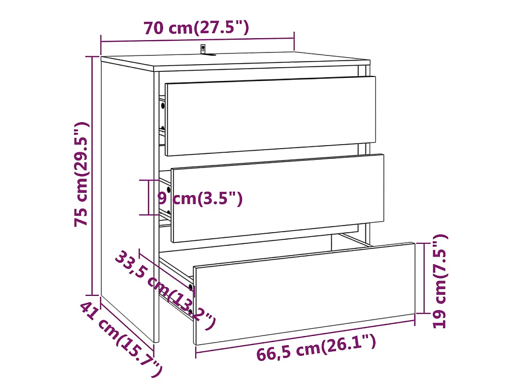 Buffet Noir 70x41x75 cm Bois d'ingénierie