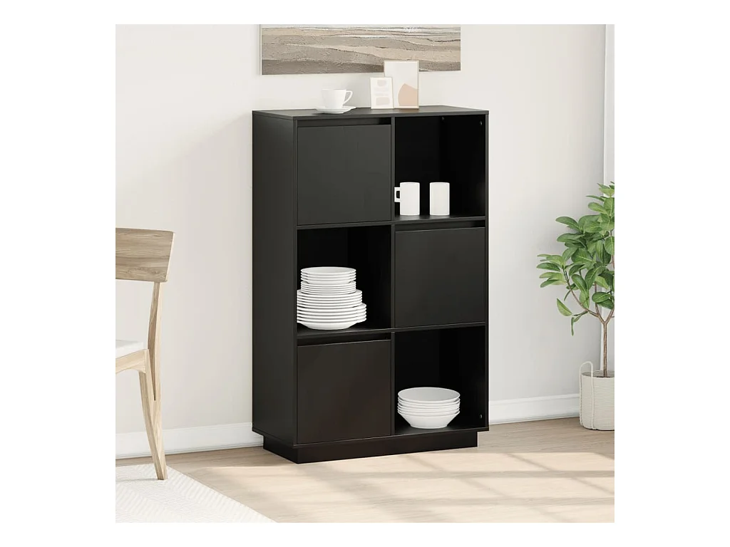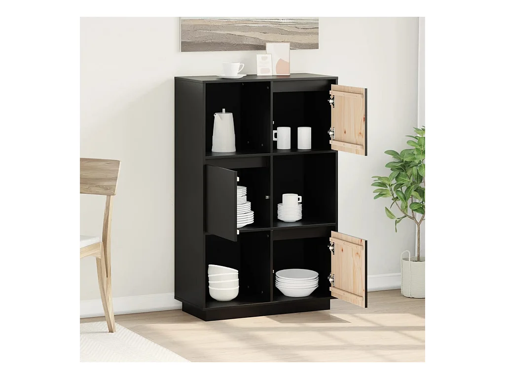 Buffet Noir 74x35x117 cm Bois massif de pin