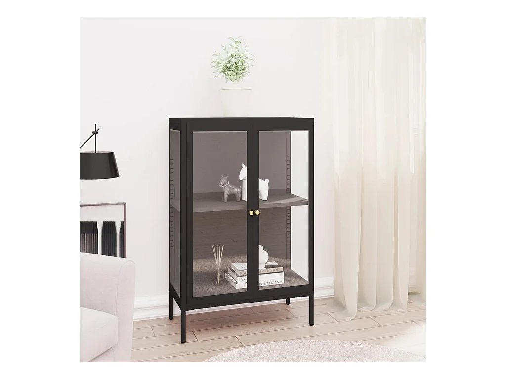 Buffet Noir 75x35x105 cm Acier et verre EGER98794