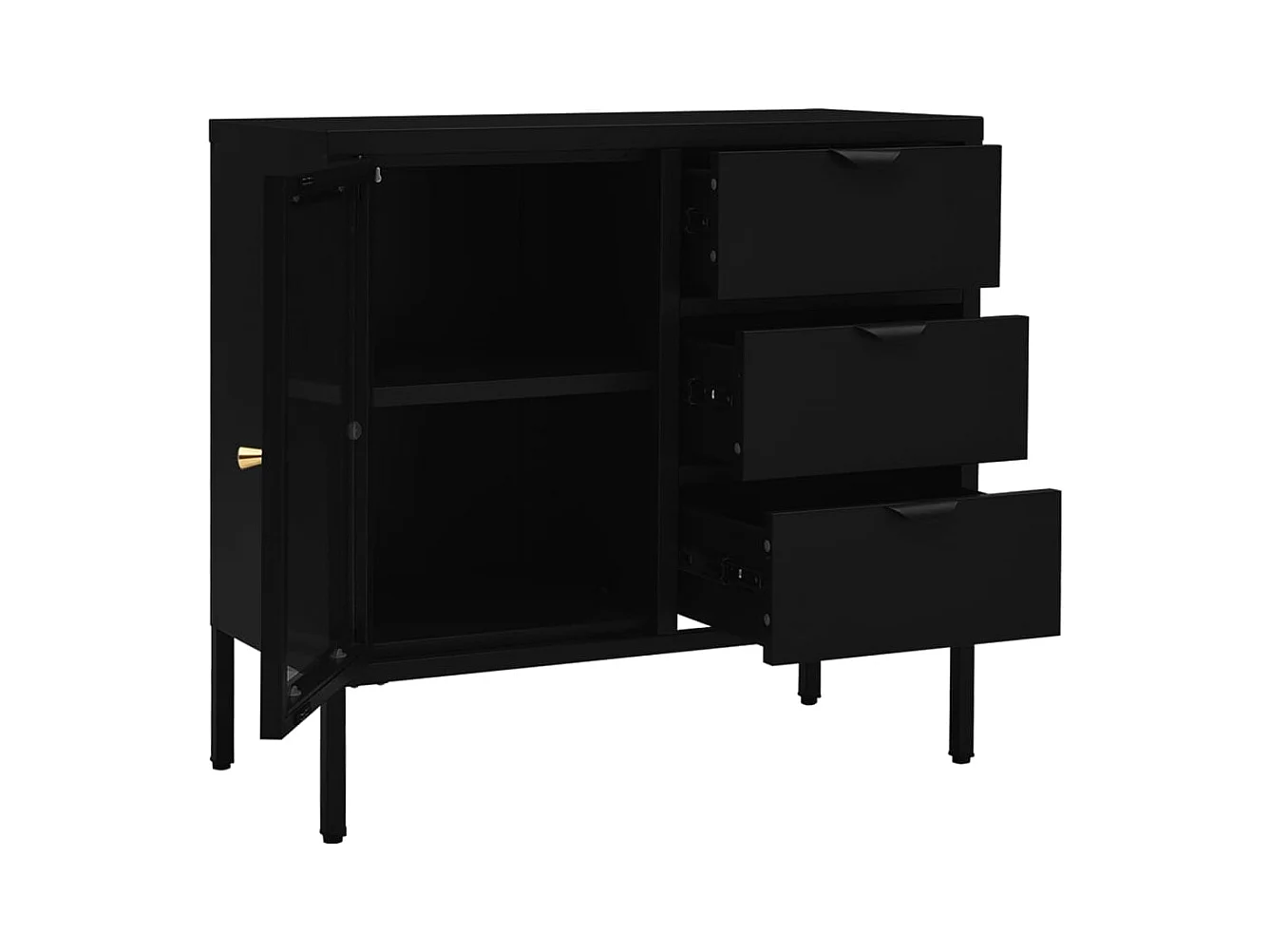 Buffet Noir 75x35x70 cm Acier et verre trempé