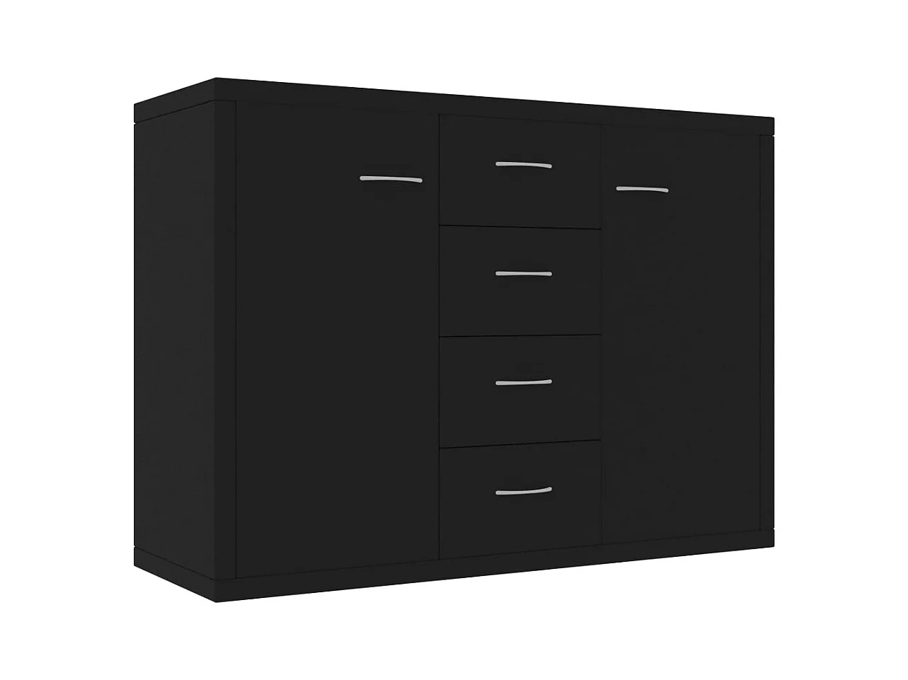 Buffet noir - Buffet à 4 portes et 5 pieds - compartiments réglables