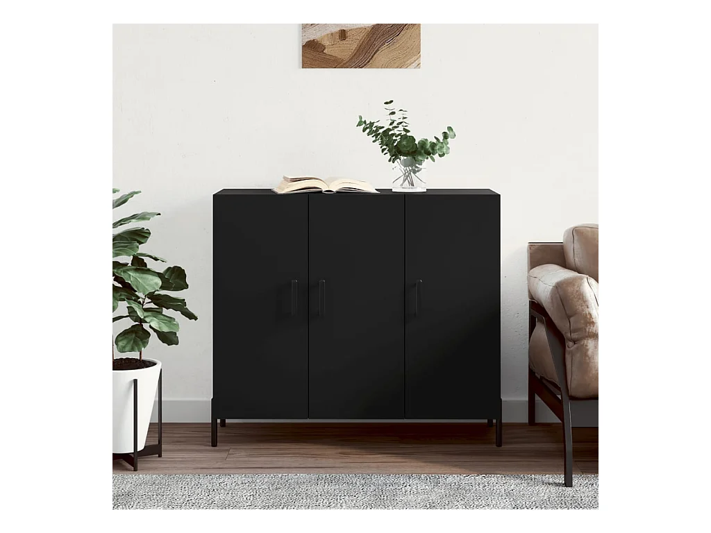 Buffet noir 90x34x80 cm bois d'ingénierie