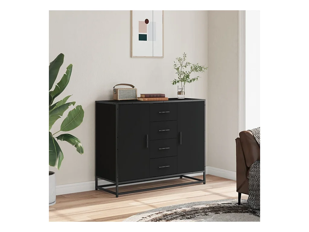 Buffet noir 94x35x76 cm bois d’ingénierie