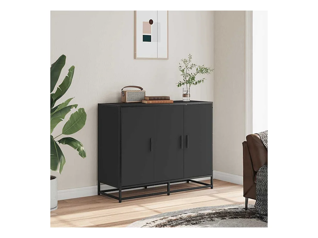 Buffet noir 92x35x76 cm bois d’ingénierie