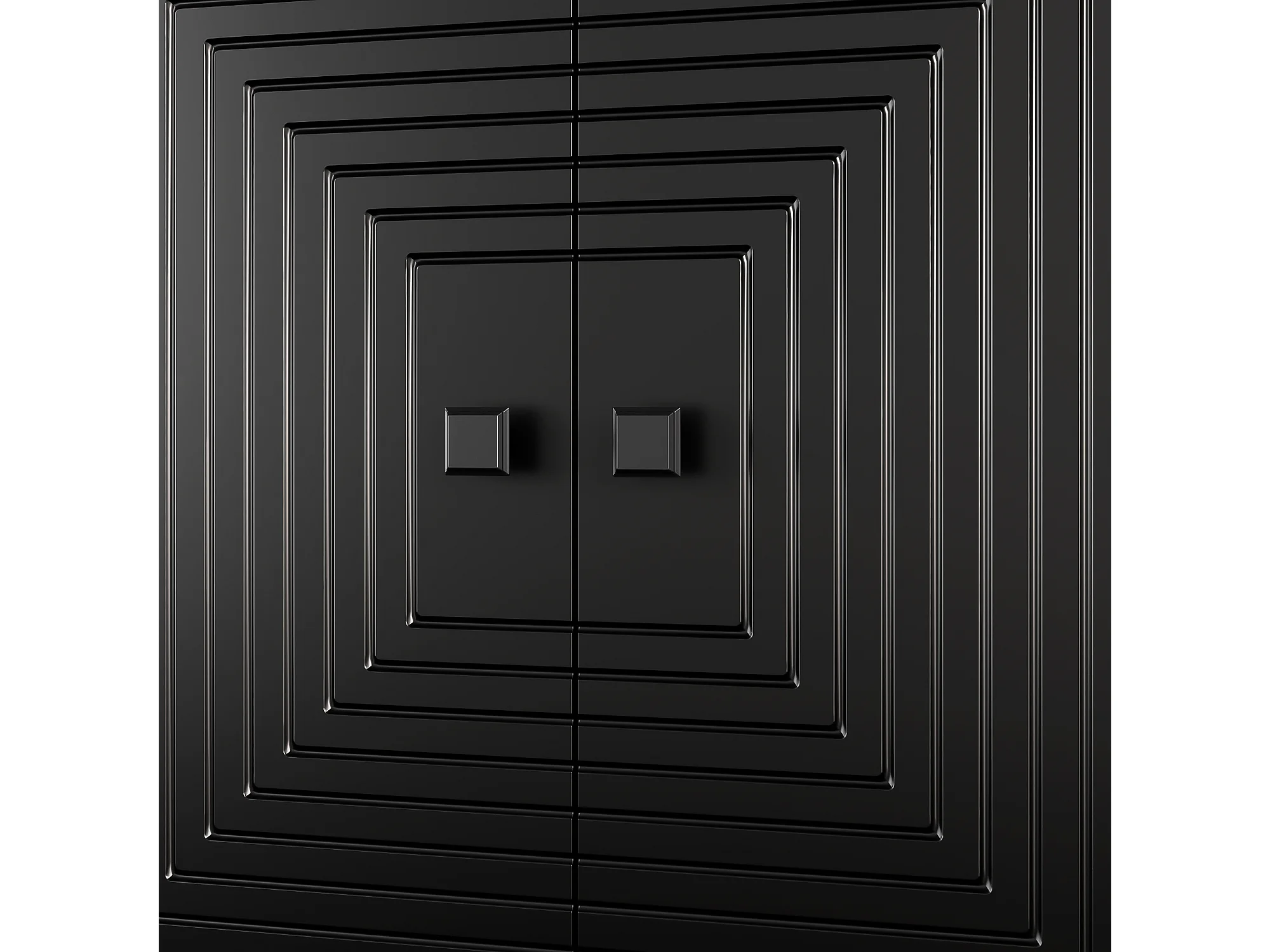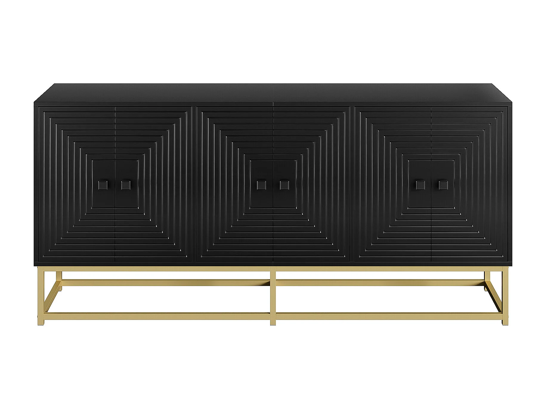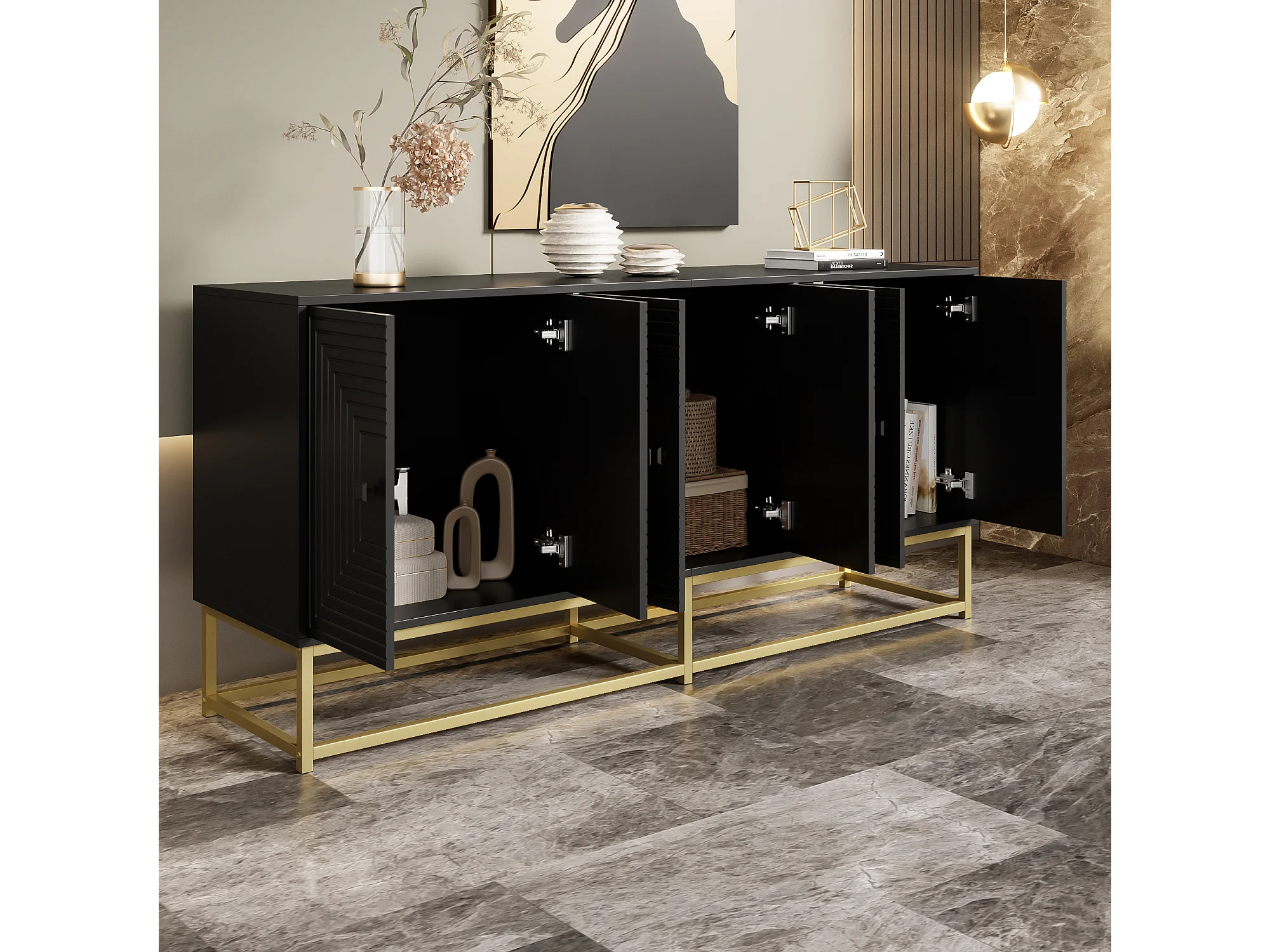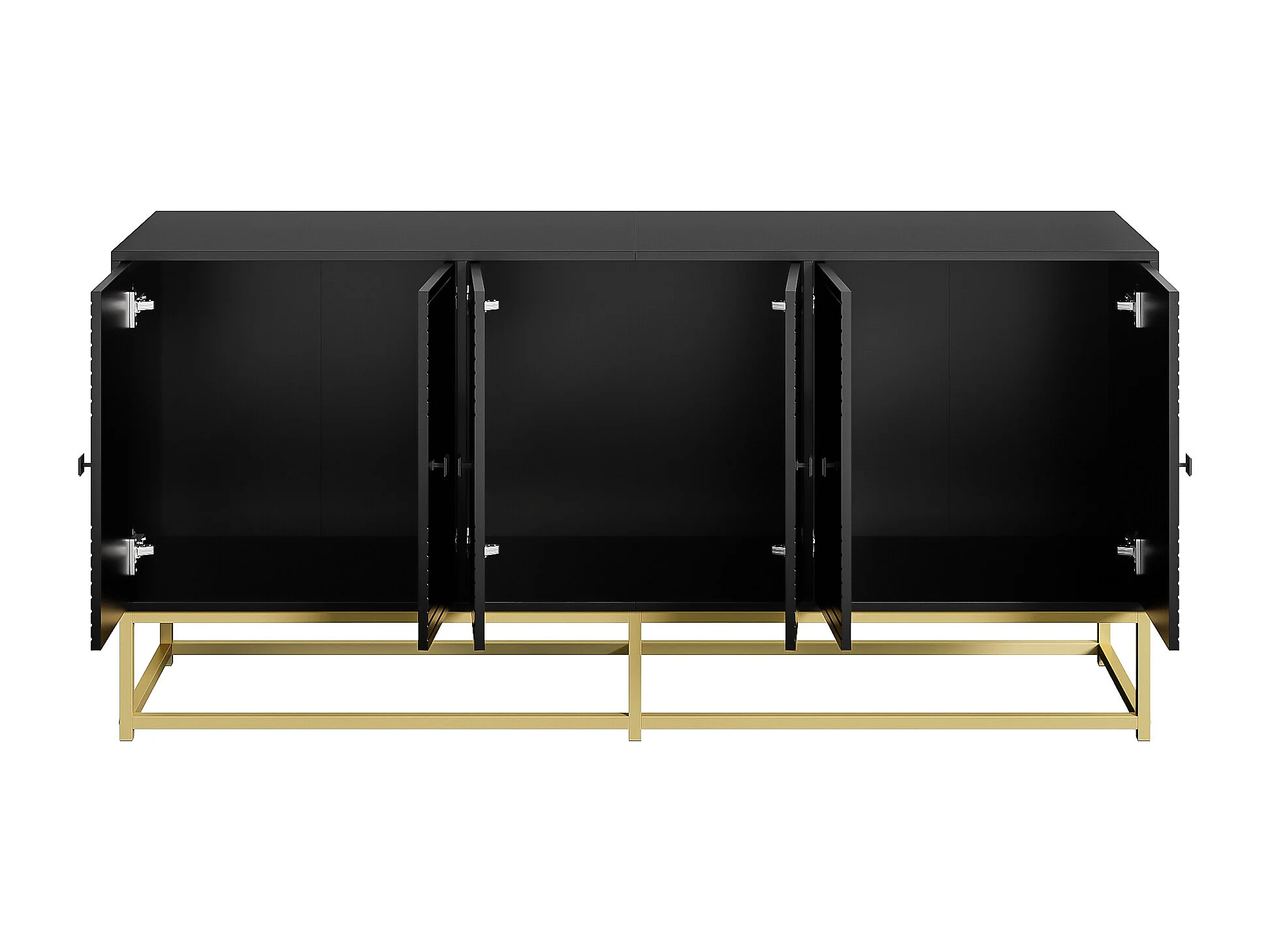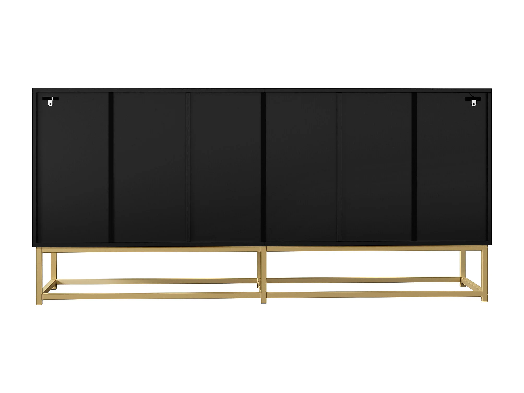 Buffet noir avec 6 portes - Grand espace de rangement - Pieds doré