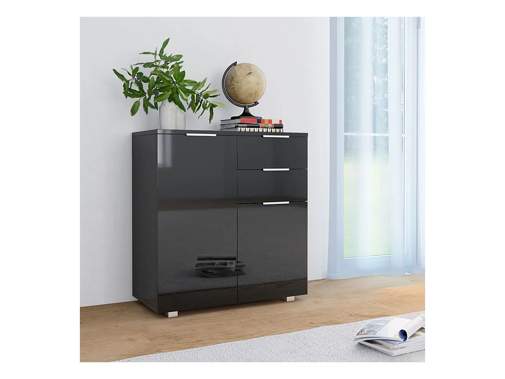 Buffet Noir brillant 71x35x80 cm Bois d'ingénierie