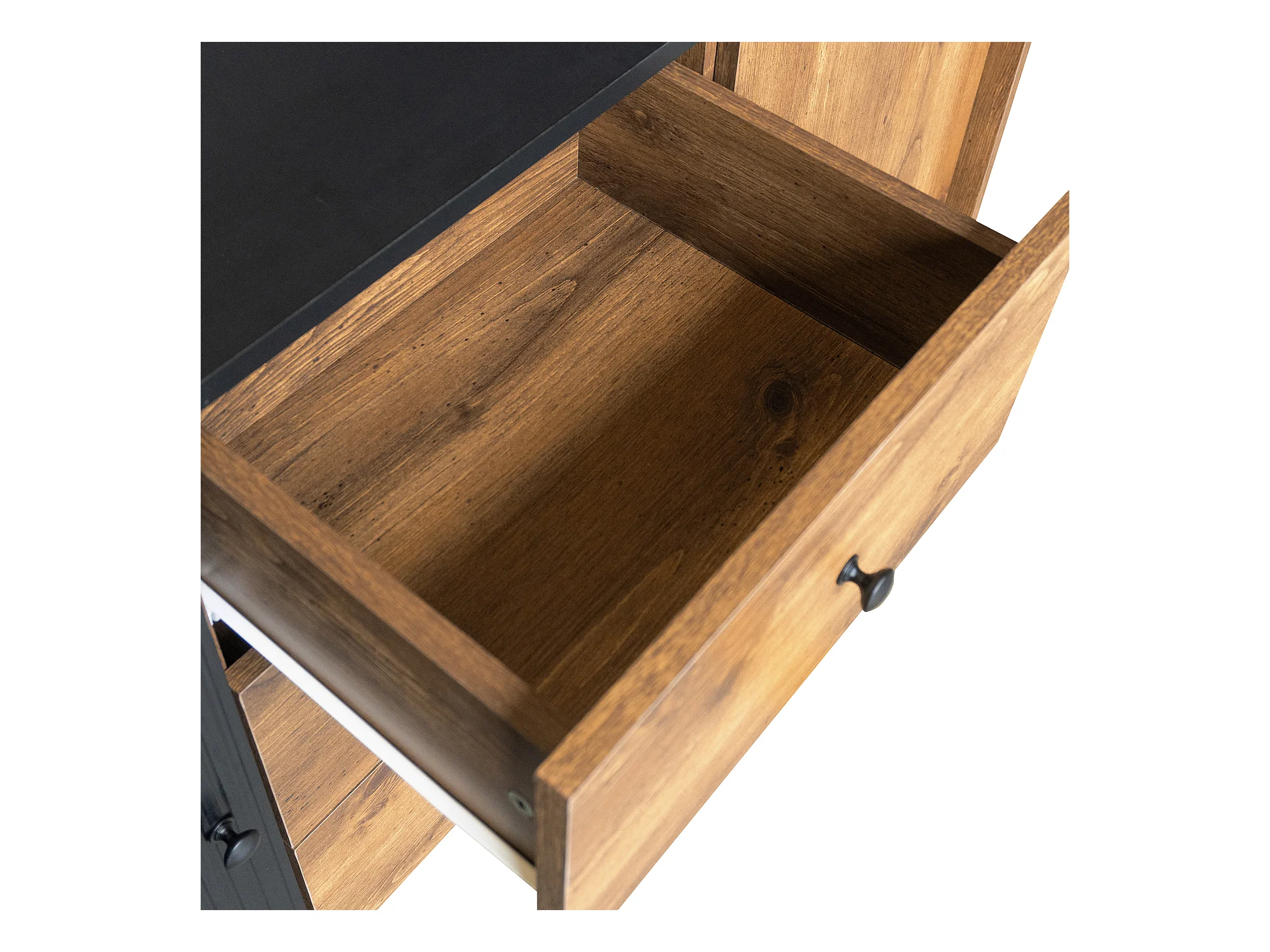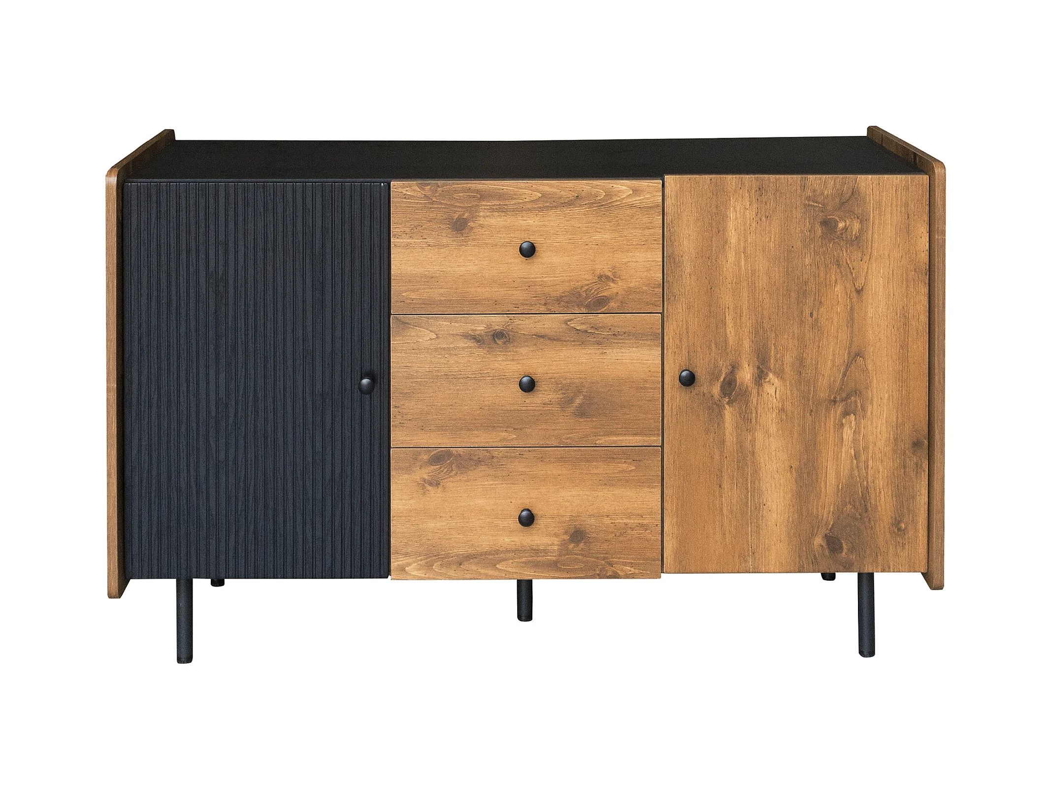 Buffet noir et bois 120 cm - Style moderne, 2 portes et 3 tiroirs