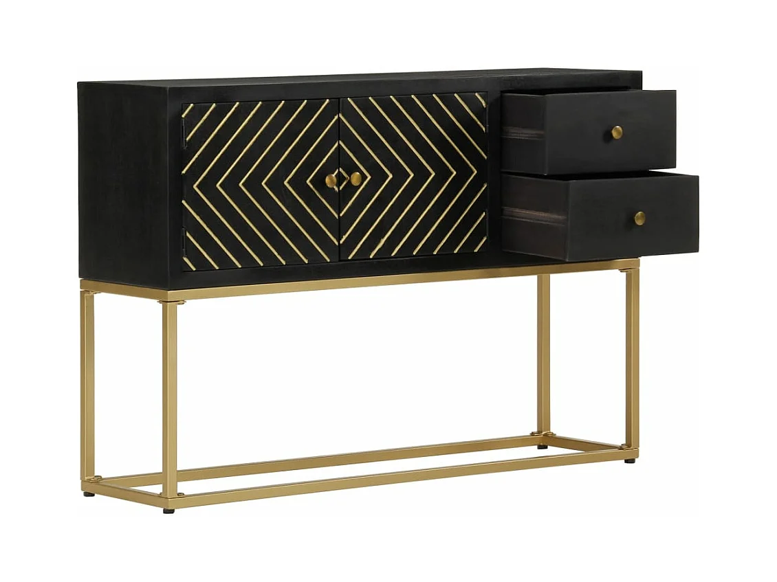 Buffet noir et doré 110x30x75 cm bois massif de manguier FR82706