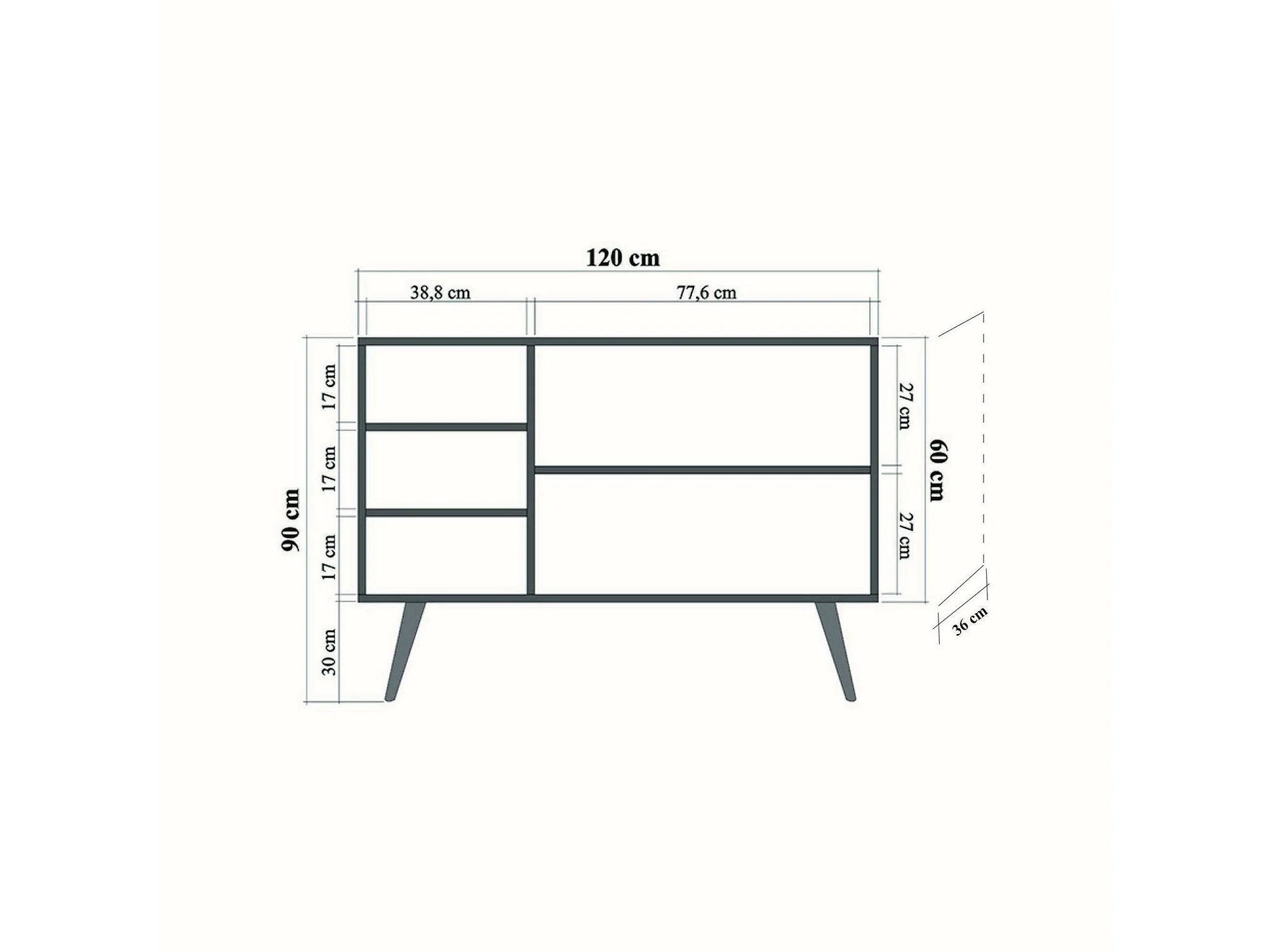 Buffet Nunki, Buffet du salon, Commode de salon, Garde-manger de cuisine, 120x36h90 cm, Chêne