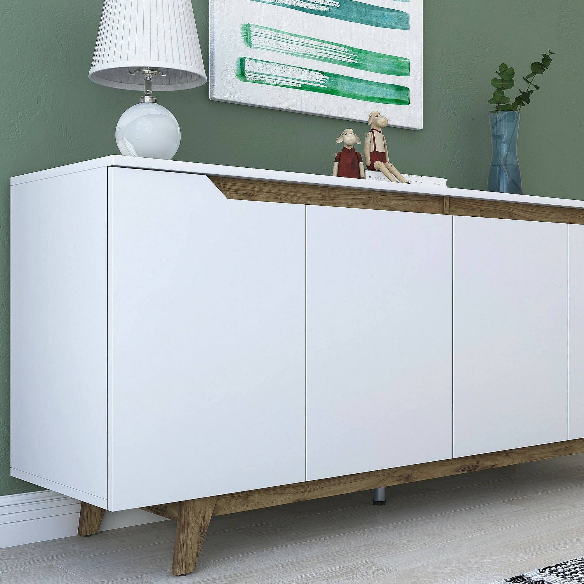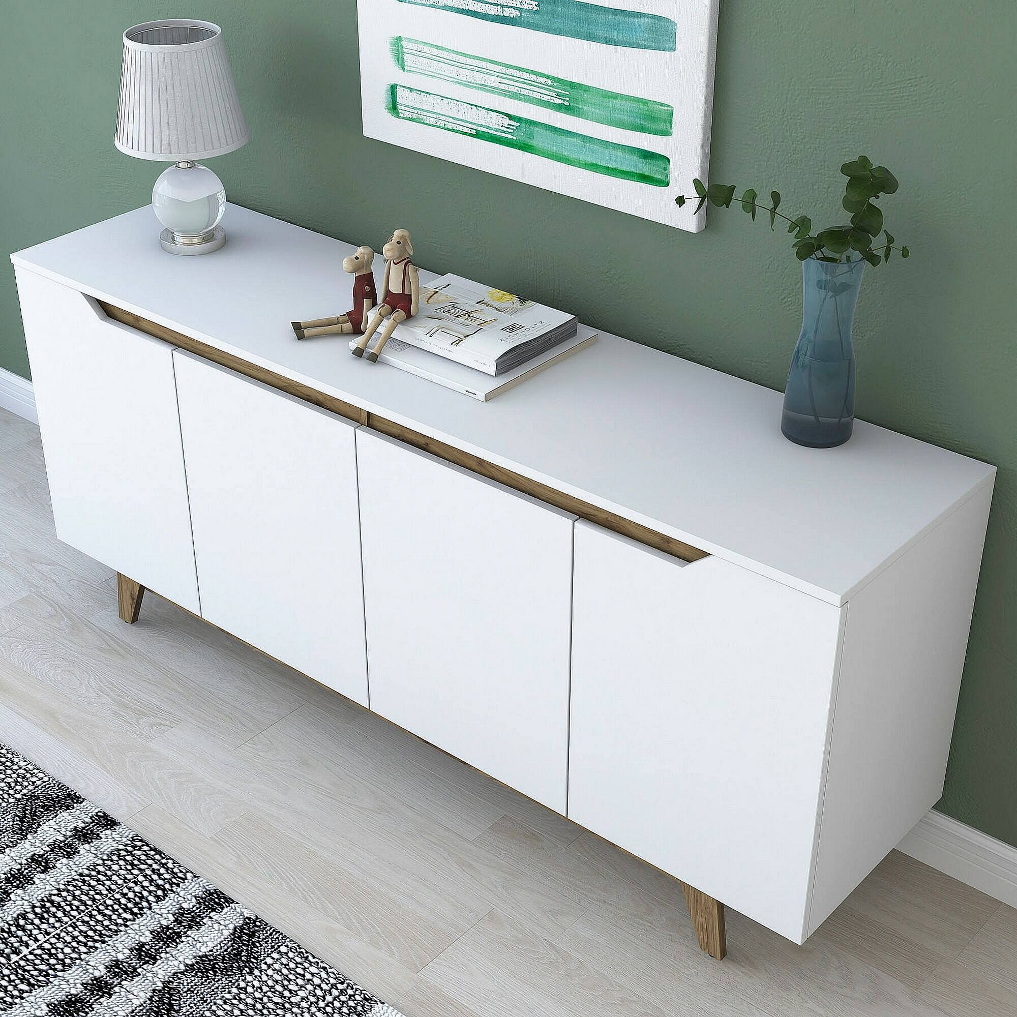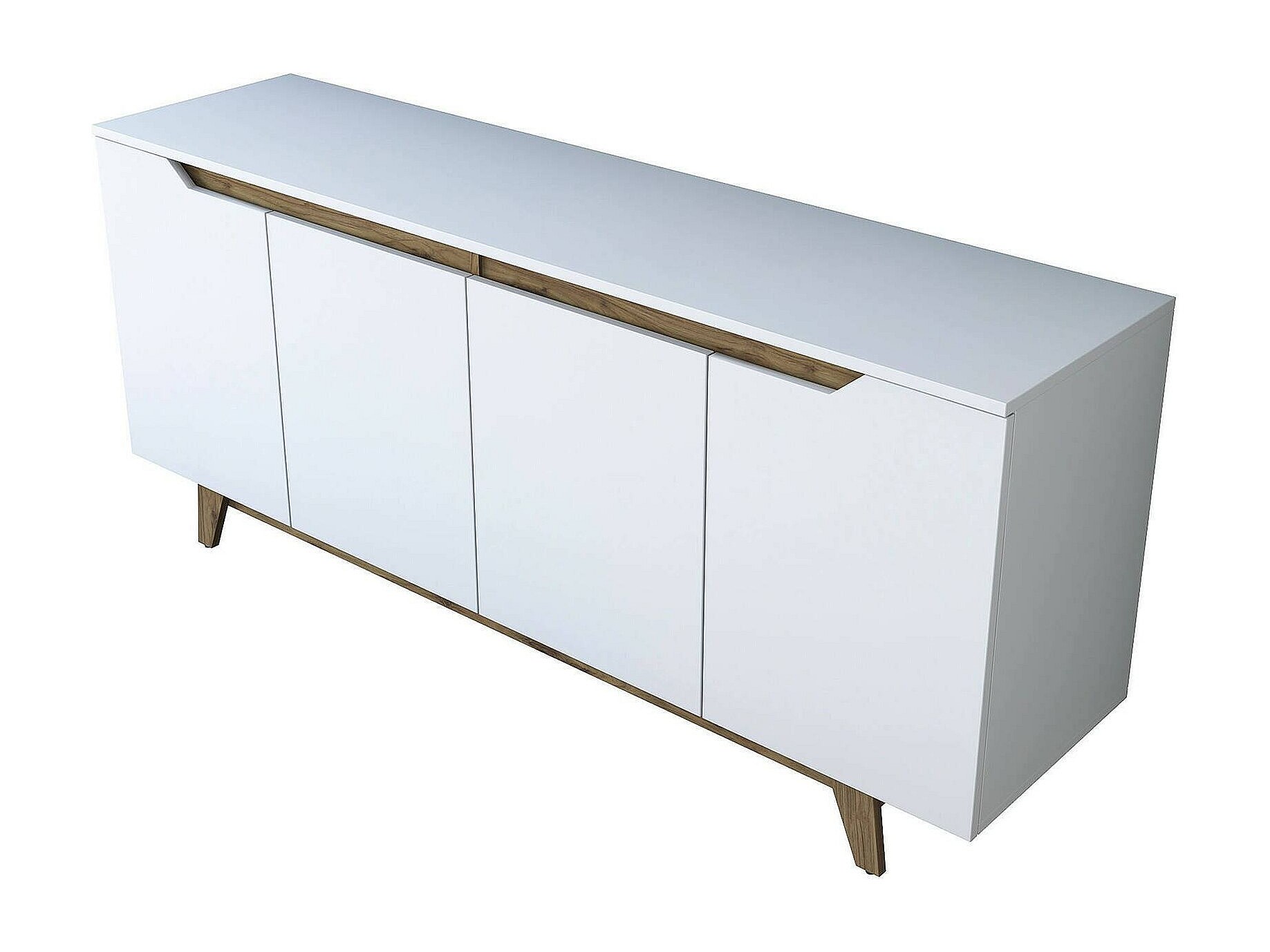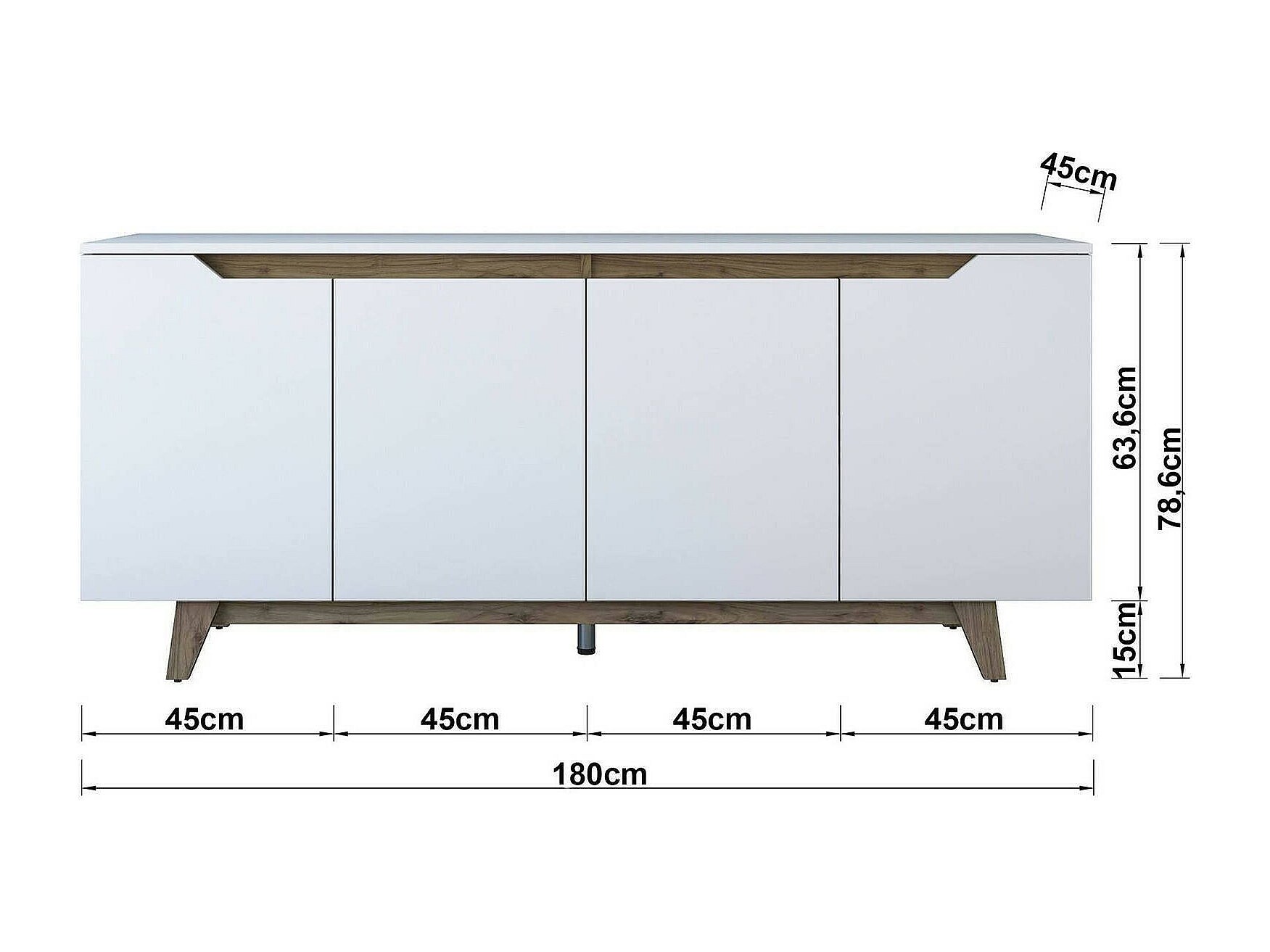 Buffet Nusakan, Buffet du salon, Commode de salon, Garde-manger de cuisine, 180x45h79 cm, Blanc et Noyer