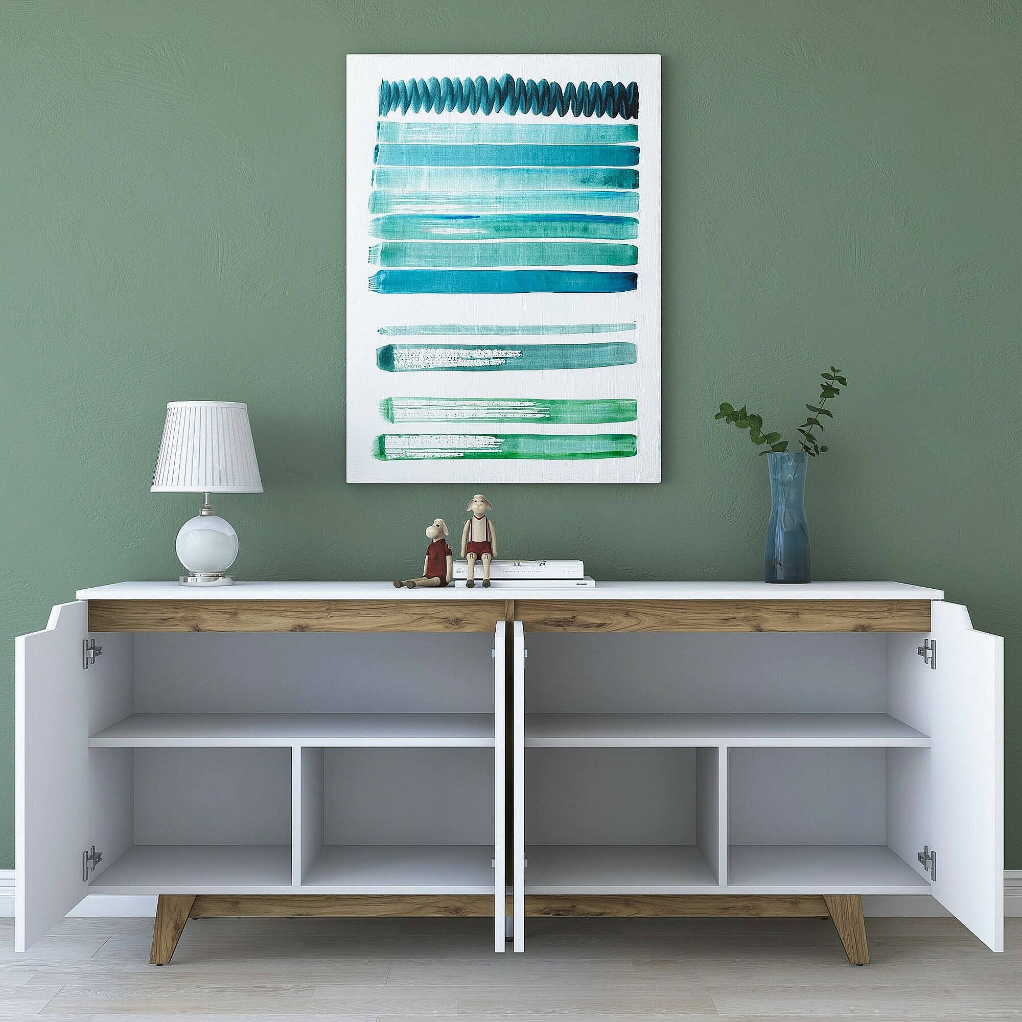 Buffet Orionis, Buffet du salon, Commode de salon, Garde-manger de cuisine, 180x35h78 cm, Noyer et Blanc