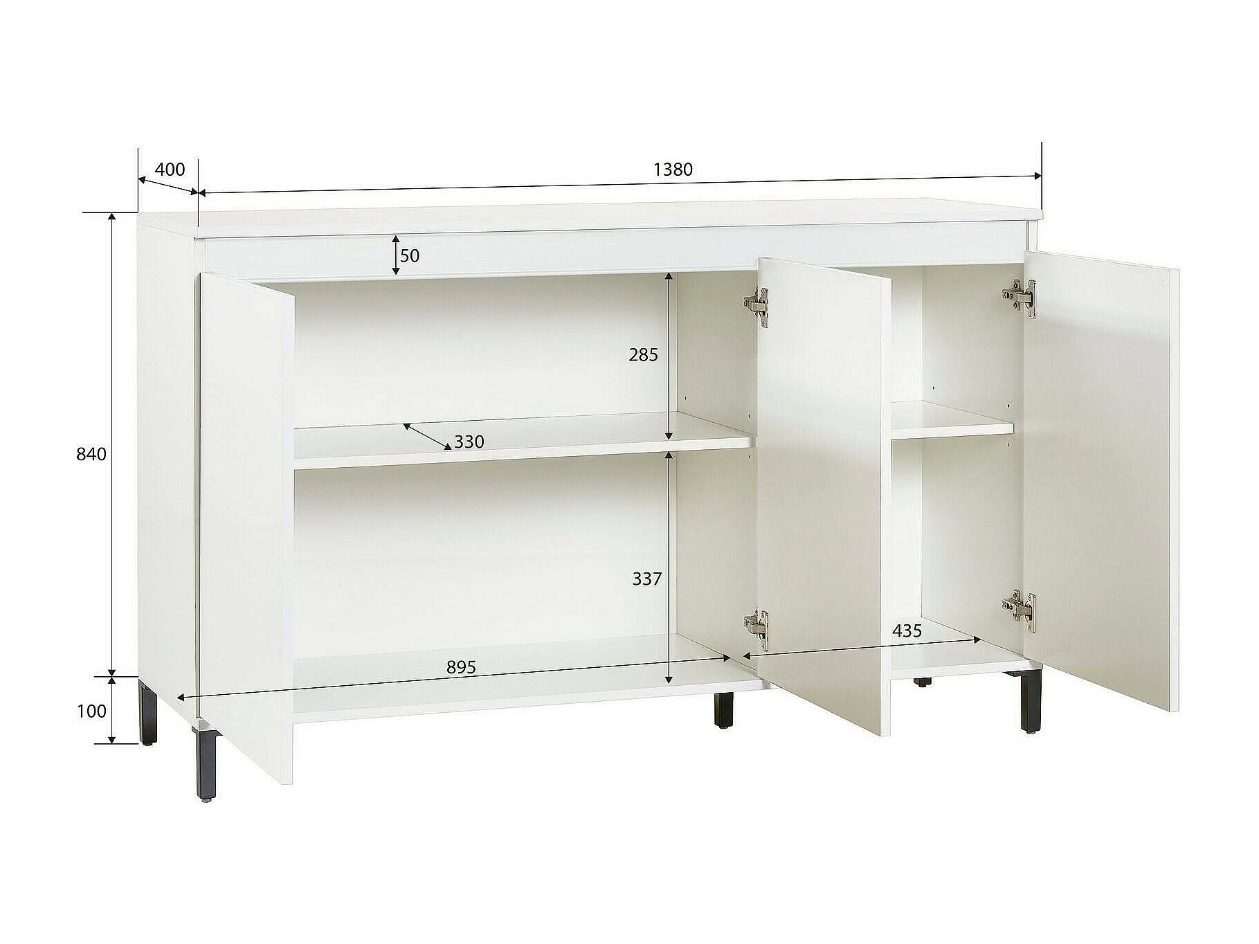 Buffet Dodoma, Buffet du salon, Commode de salon, Garde-manger de cuisine, Made in Italy, 138x40h90 cm, Blanc brillant et anthracite