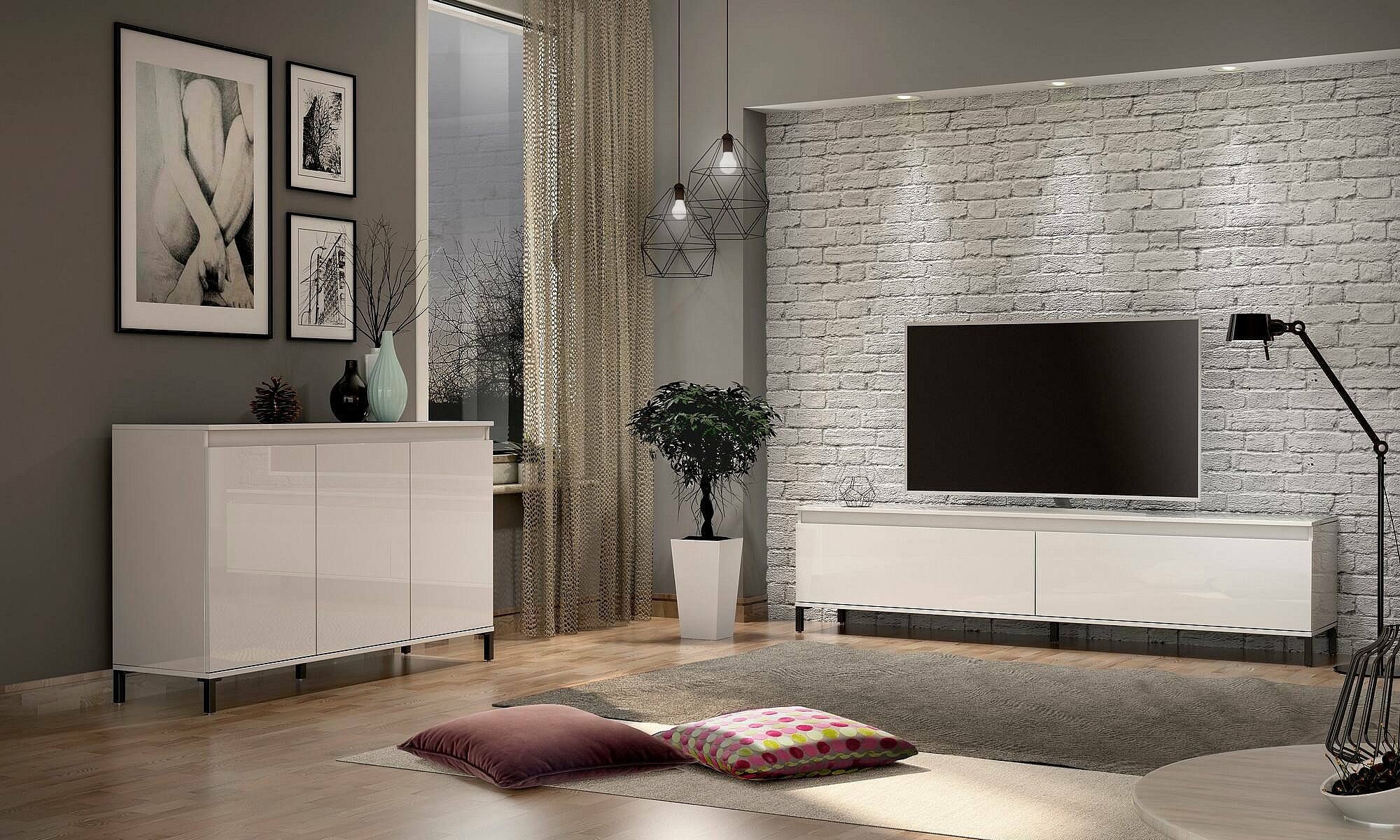 Buffet Willer, Buffet de salon 3 portes, Buffet de salon, Buffet moderne, 100% Made in Italy, 200x40h80 cm, Blanc brillant