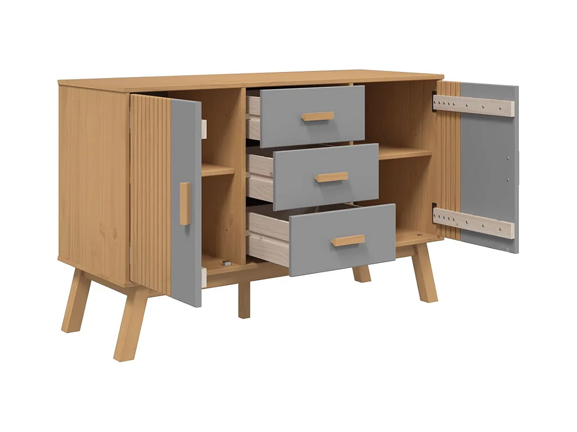 Buffet OLDEN gris et marron 114x43x73,5 cm bois massif de pin