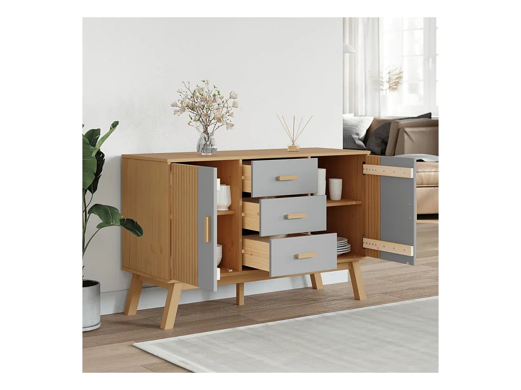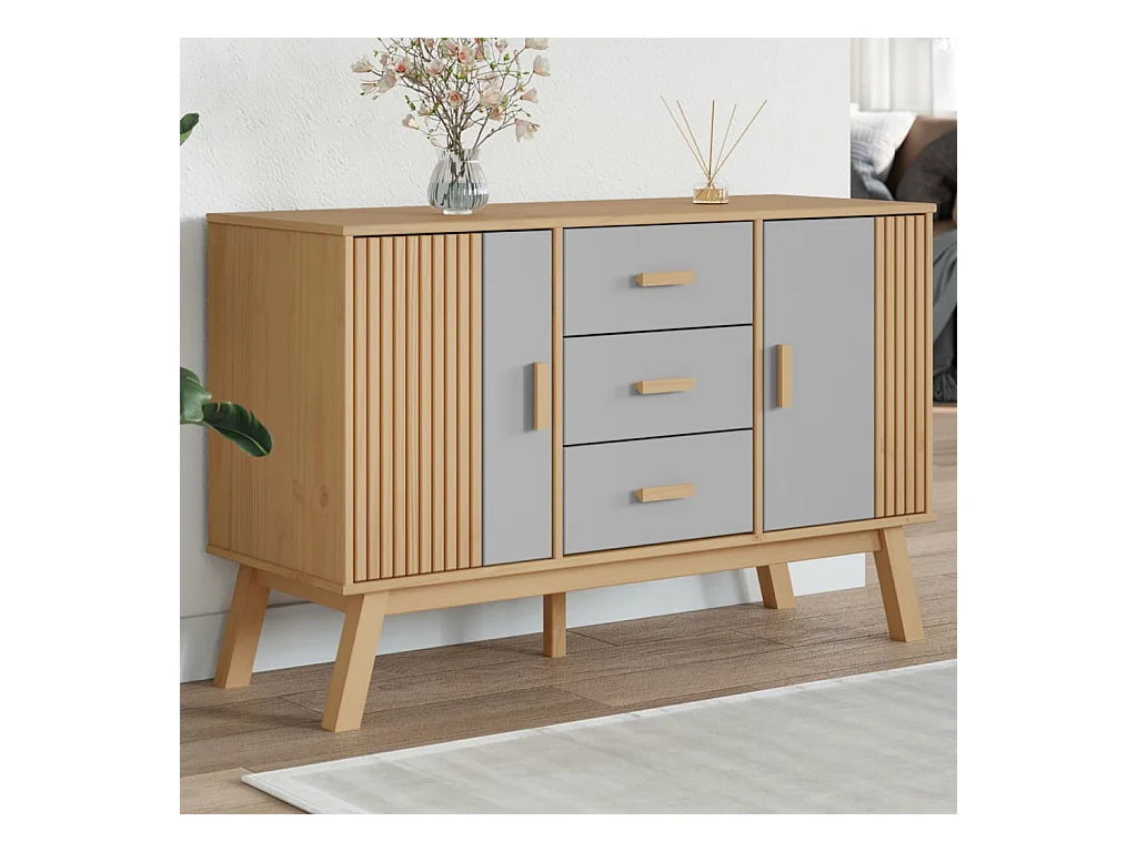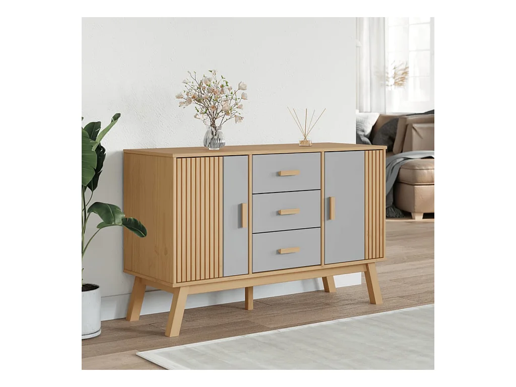 Buffet OLDEN gris et marron 114x43x73,5 cm bois massif de pin FR57159