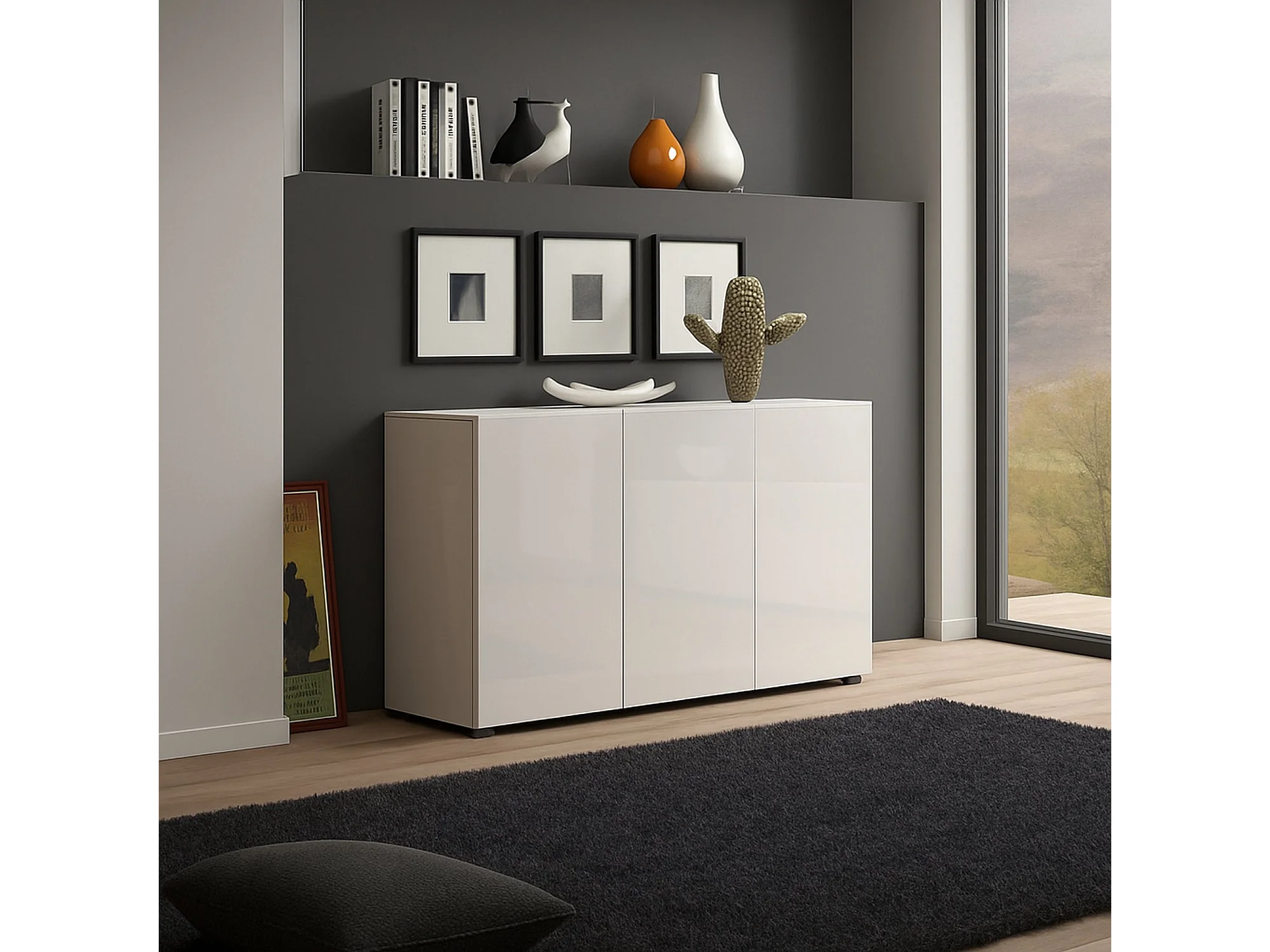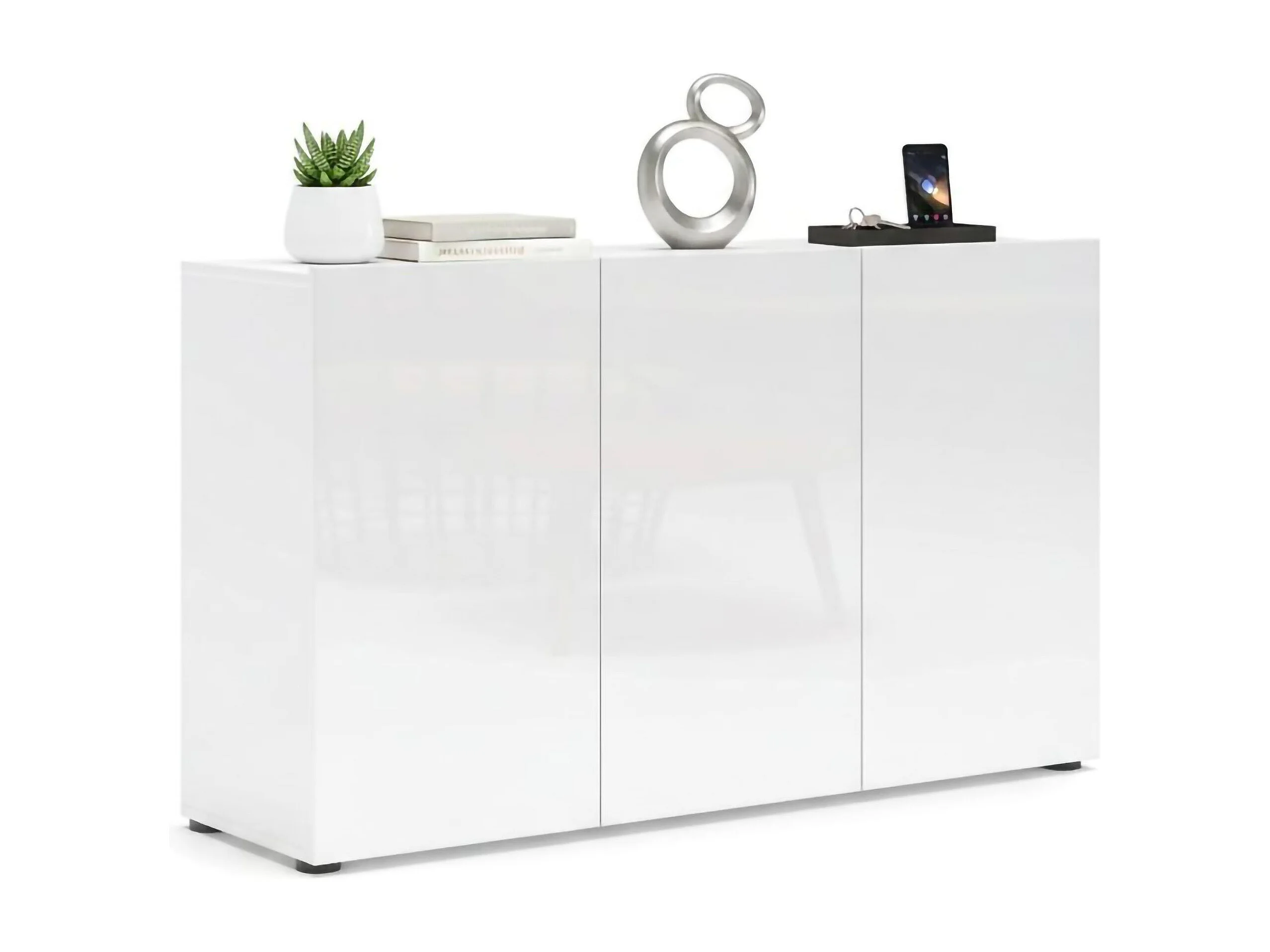 Buffet Polokwane, Buffet du salon, Commode de salon, Garde-manger de cuisine, Made in Italy, 135x38h79 cm, Blanc brillant