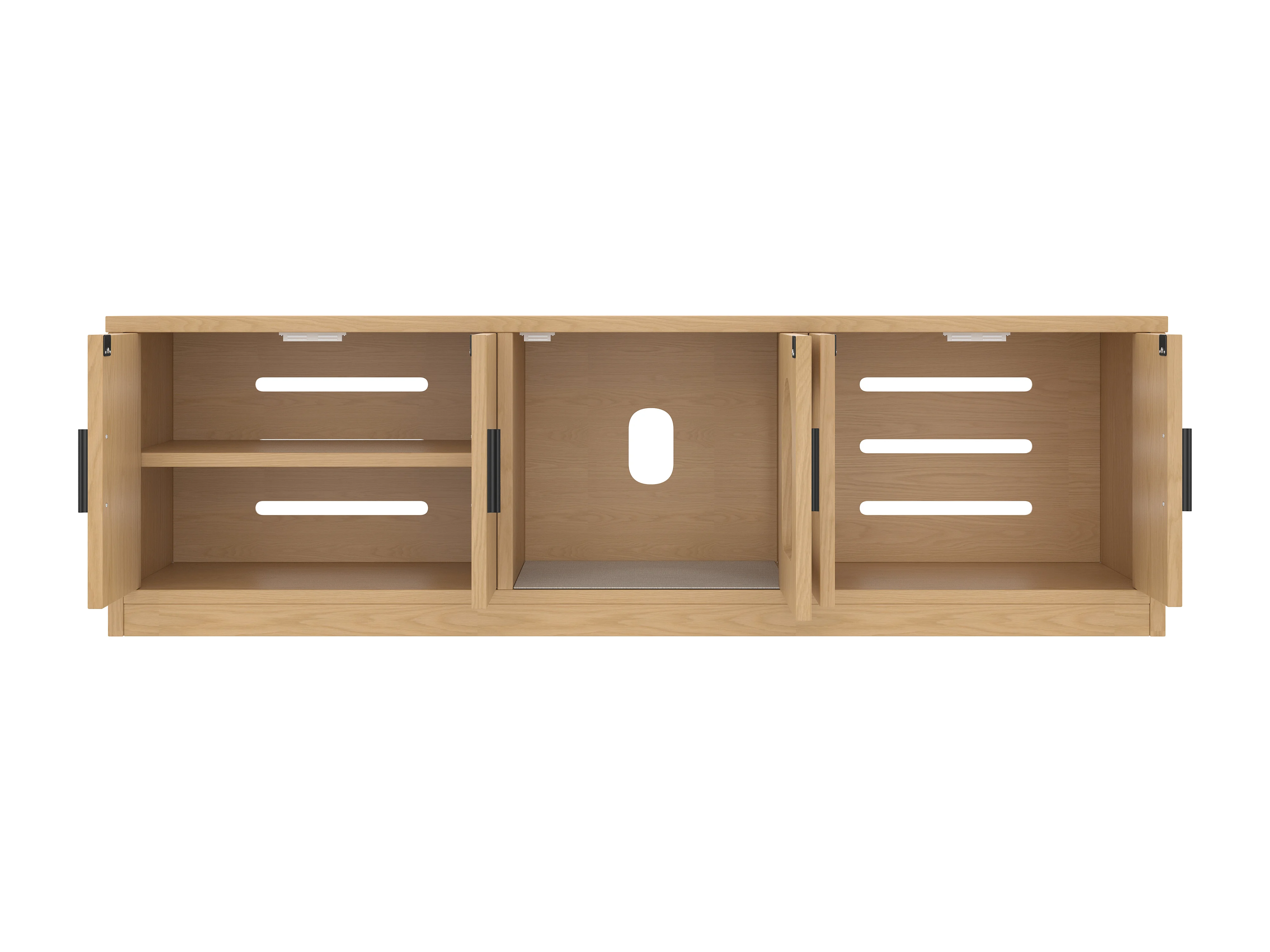 Buffet moderne - 140 x 40 x 85 cm - avec 4 portes + 3 compartiments ouverts - aggloméré - naturel