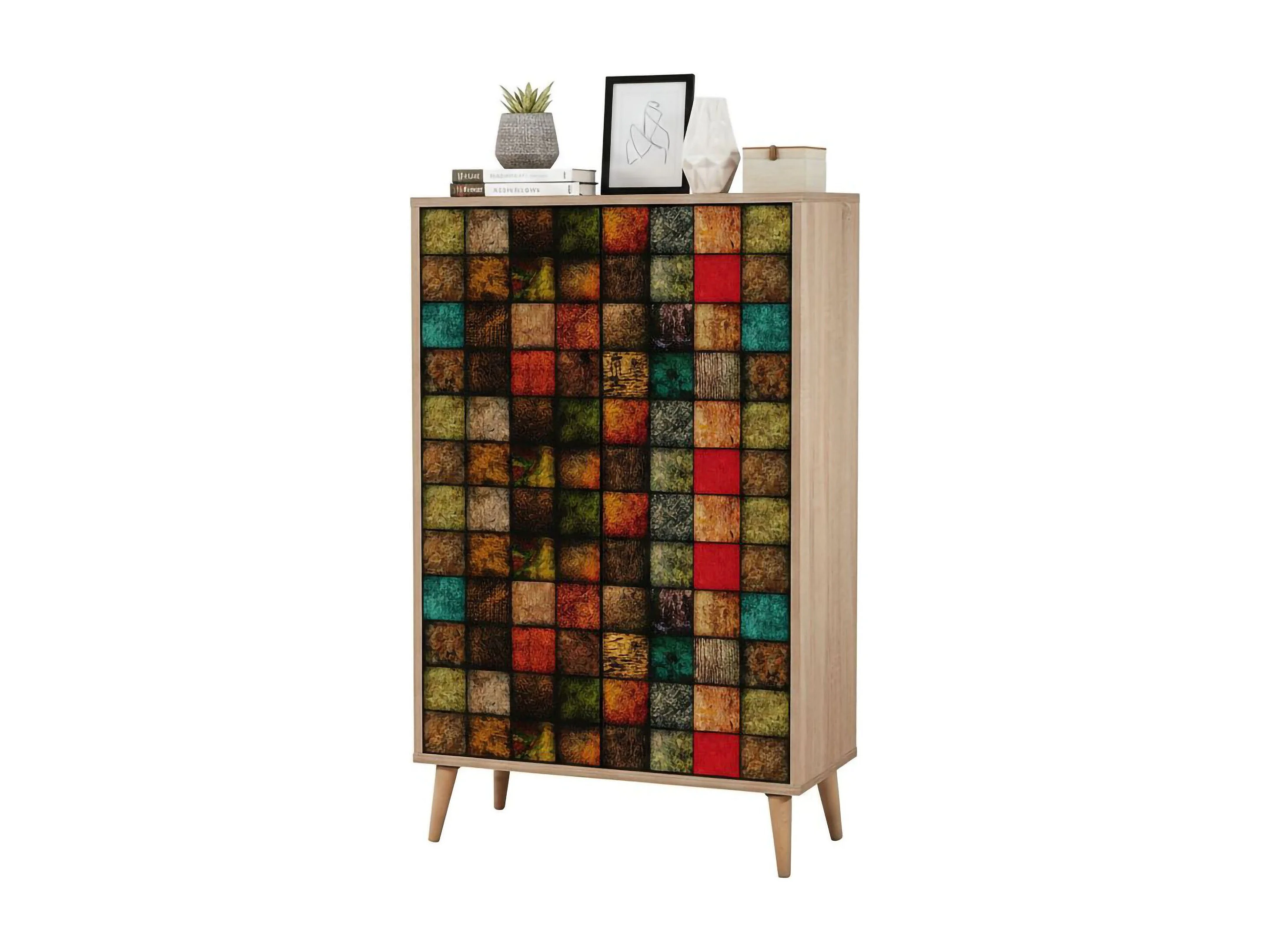 Buffet Proxima, Buffet du salon, Commode de salon, Garde-manger de cuisine, 80x36h127 cm, Chêne et Multicolore