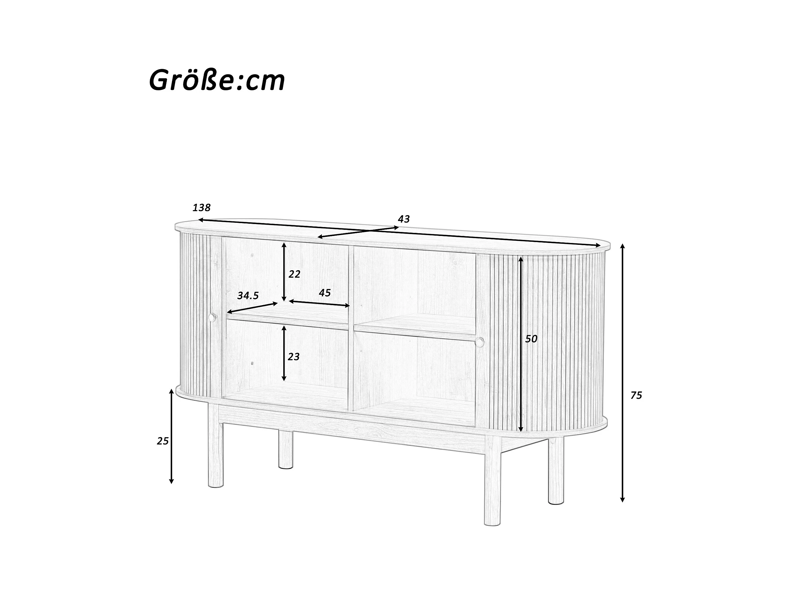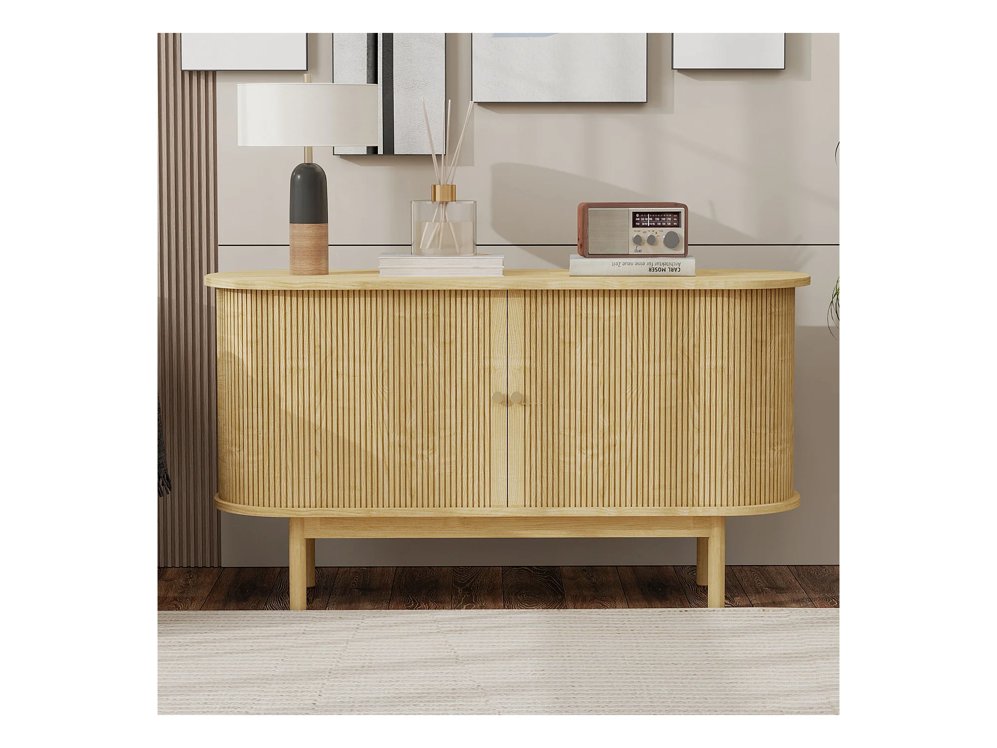 Buffet rétro moderne en bois avec portes coulissantes, étagères réglables, MDF et pin, bois naturel (138x43x75 cm)